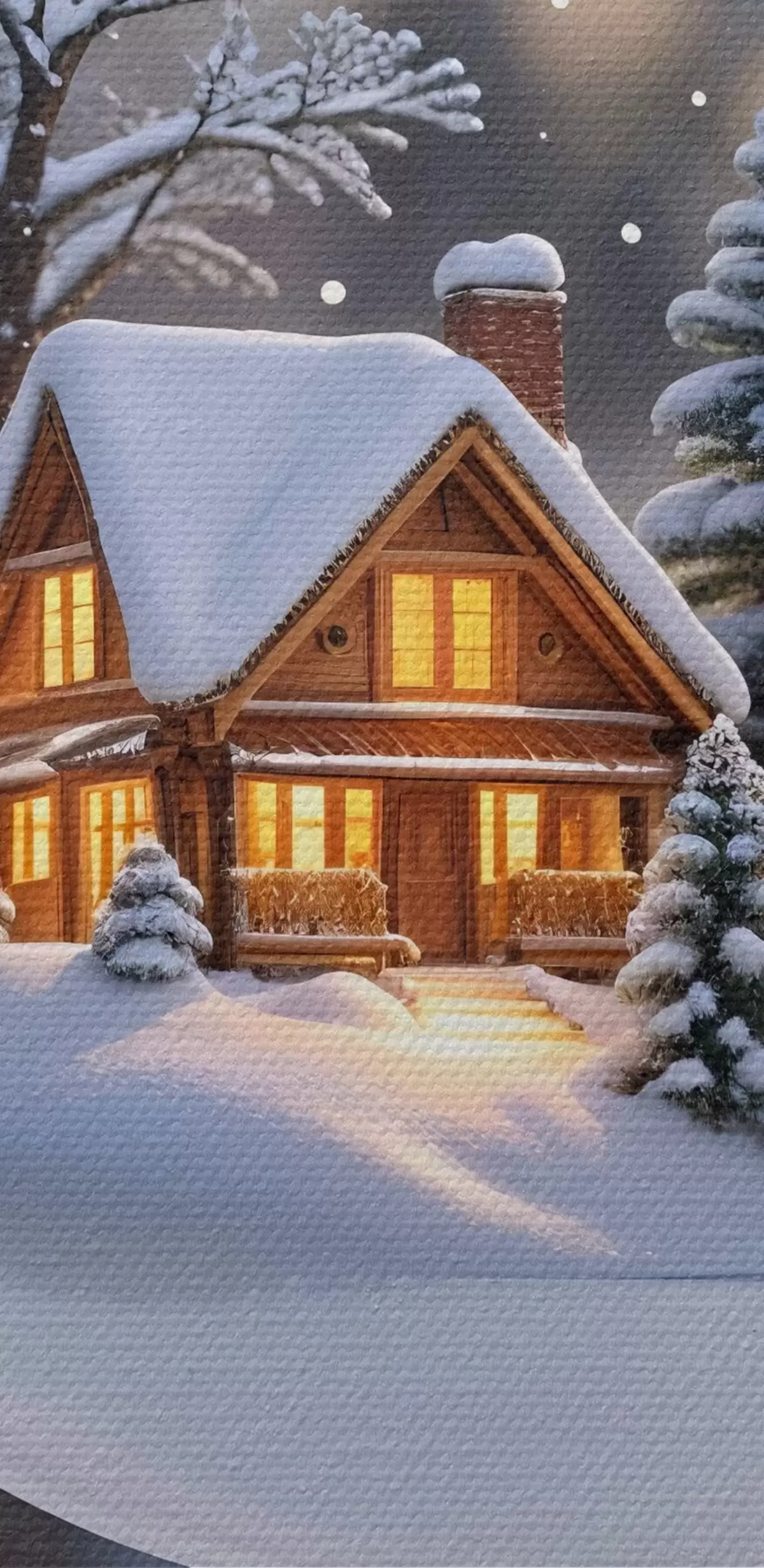Gemälde Eine gläserne Weihnachtskugel mit einer verschneiten Winterlandschaft im Inneren, die eine gemütliche Hütte im Wald mit Tannenbäumen zeigt Art. s42236