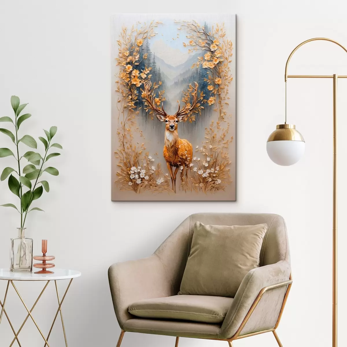 Gemälde Hirsch mit großem Geweih auf Waldhintergrund Art. s42252