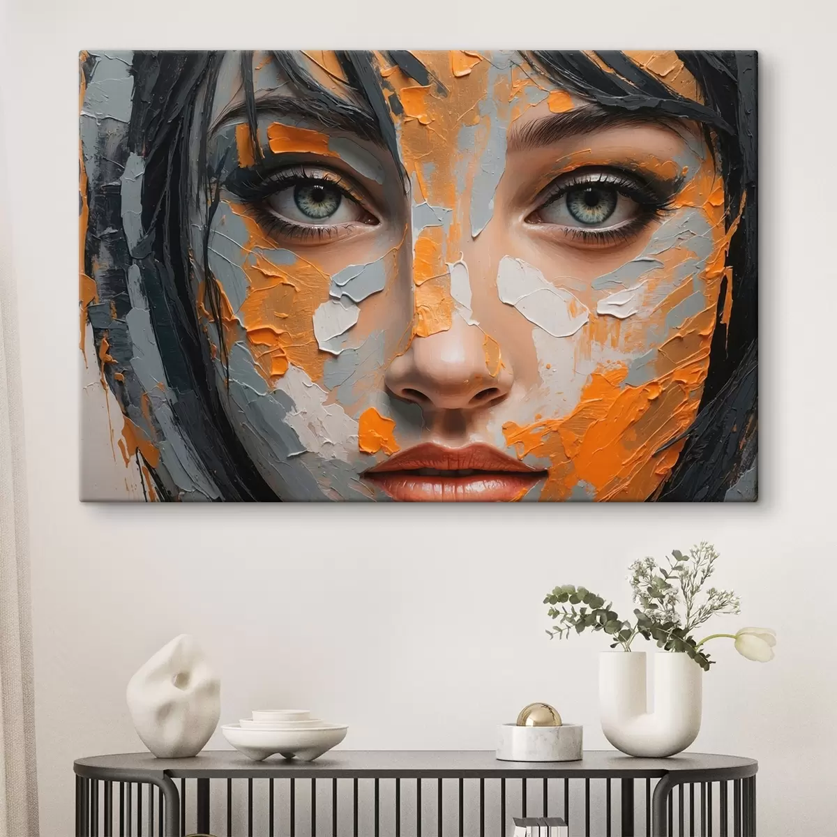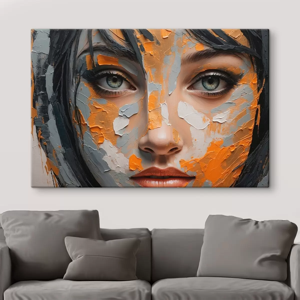 Gemälde Gesicht eines Mädchens mit weißer und gelber Farbe Art. s42259
