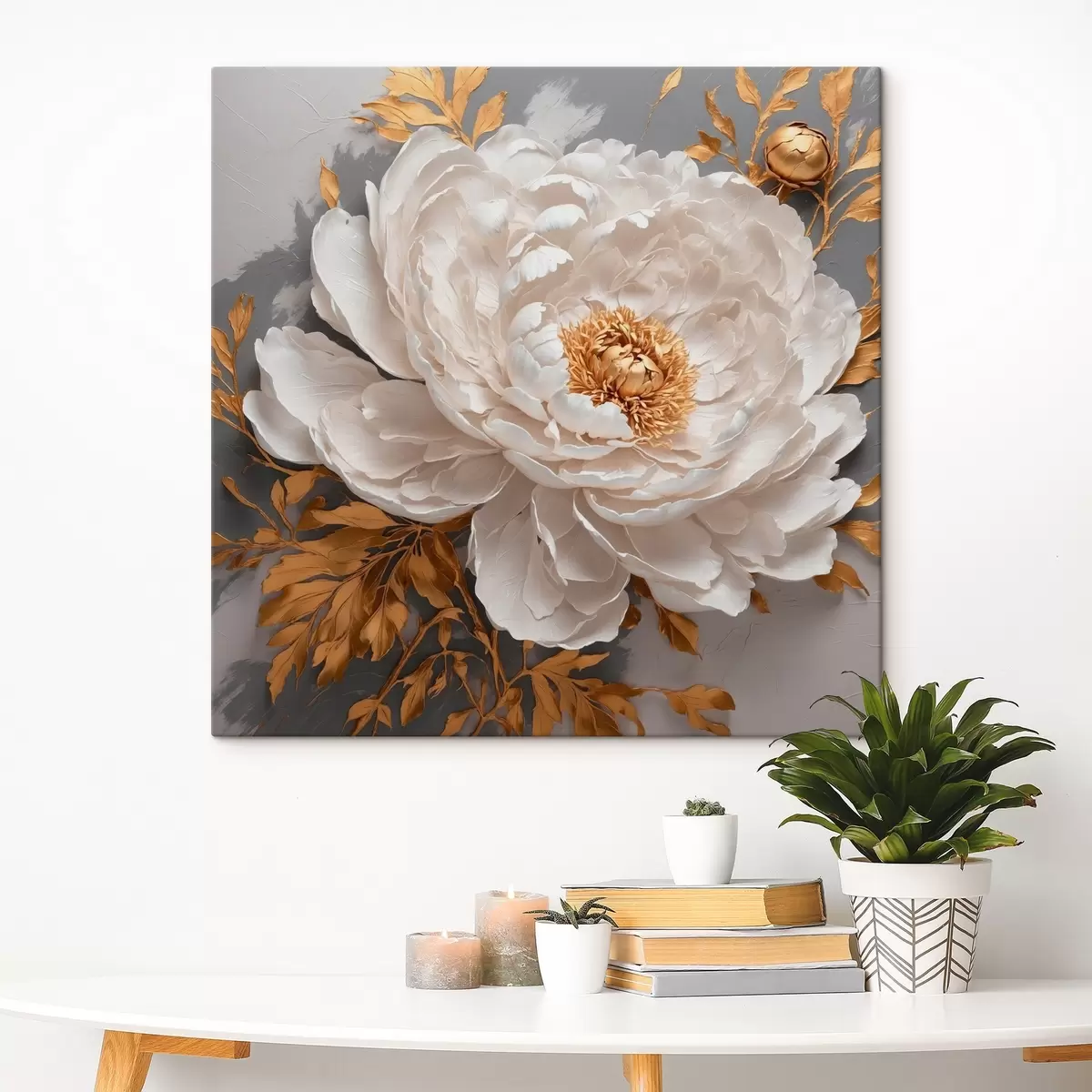 Gemälde Weiße Pfingstrose auf grauem Hintergrund Art. s42260