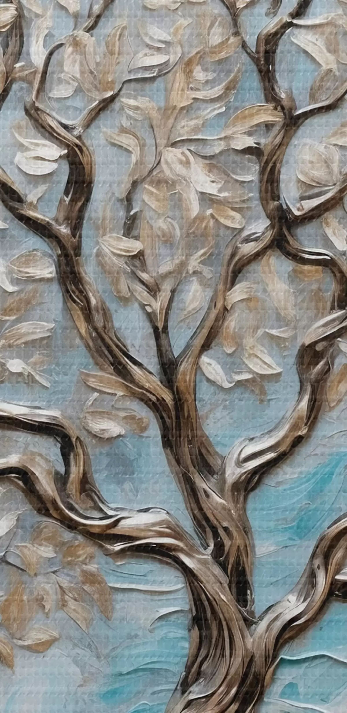Gemälde Silberner Baum auf blau-grauem Hintergrund Art. s42273