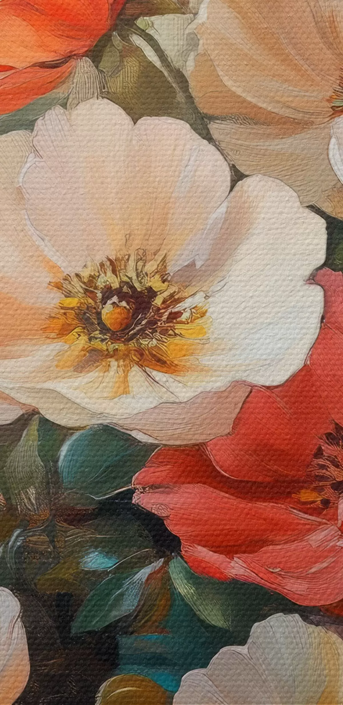 Drei Materialtypen stehen zur Verfügung: Economic Canvas - ein dichtes und haltbares Material für den Digitaldruck, identisch mit Malerleinwand, wasserfeste Oberfläche, realistische Wiedergabe von Details, mittelkörniges Material. Premium Canvas - die Textur ähnelt der einer Malerleinwand (verwobene kleine Fäden). Weiche, detaillierte Wiedergabe des Bildes auf einer matten Oberfläche. Eco-Premium - hochwertiges Gewebe aus 100% Baumwolle. Dank der natürlichen Baumwollfasern ist das Material langlebig und verschleißfest. Hervorragende Farbwiedergabe und Detailtreue.