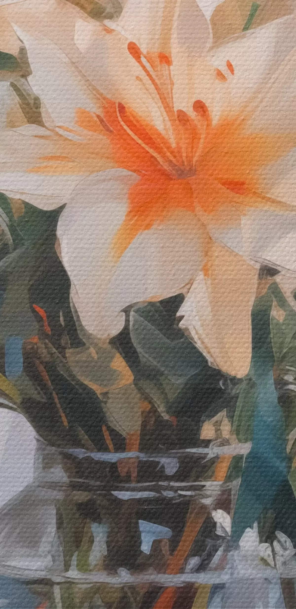Drei Materialtypen stehen zur Verfügung: Economic Canvas - ein dichtes und haltbares Material für den Digitaldruck, identisch mit Malerleinwand, wasserfeste Oberfläche, realistische Wiedergabe von Details, mittelkörniges Material. Premium Canvas - die Textur ähnelt der einer Malerleinwand (verwobene kleine Fäden). Weiche, detaillierte Wiedergabe des Bildes auf einer matten Oberfläche. Eco-Premium - hochwertiges Gewebe aus 100% Baumwolle. Dank der natürlichen Baumwollfasern ist das Material langlebig und verschleißfest. Hervorragende Farbwiedergabe und Detailtreue.