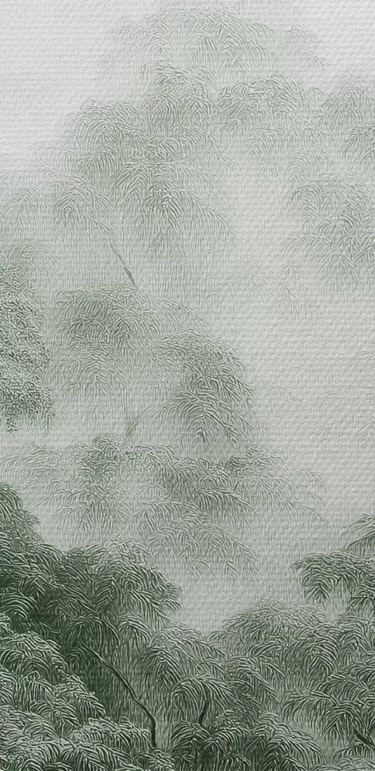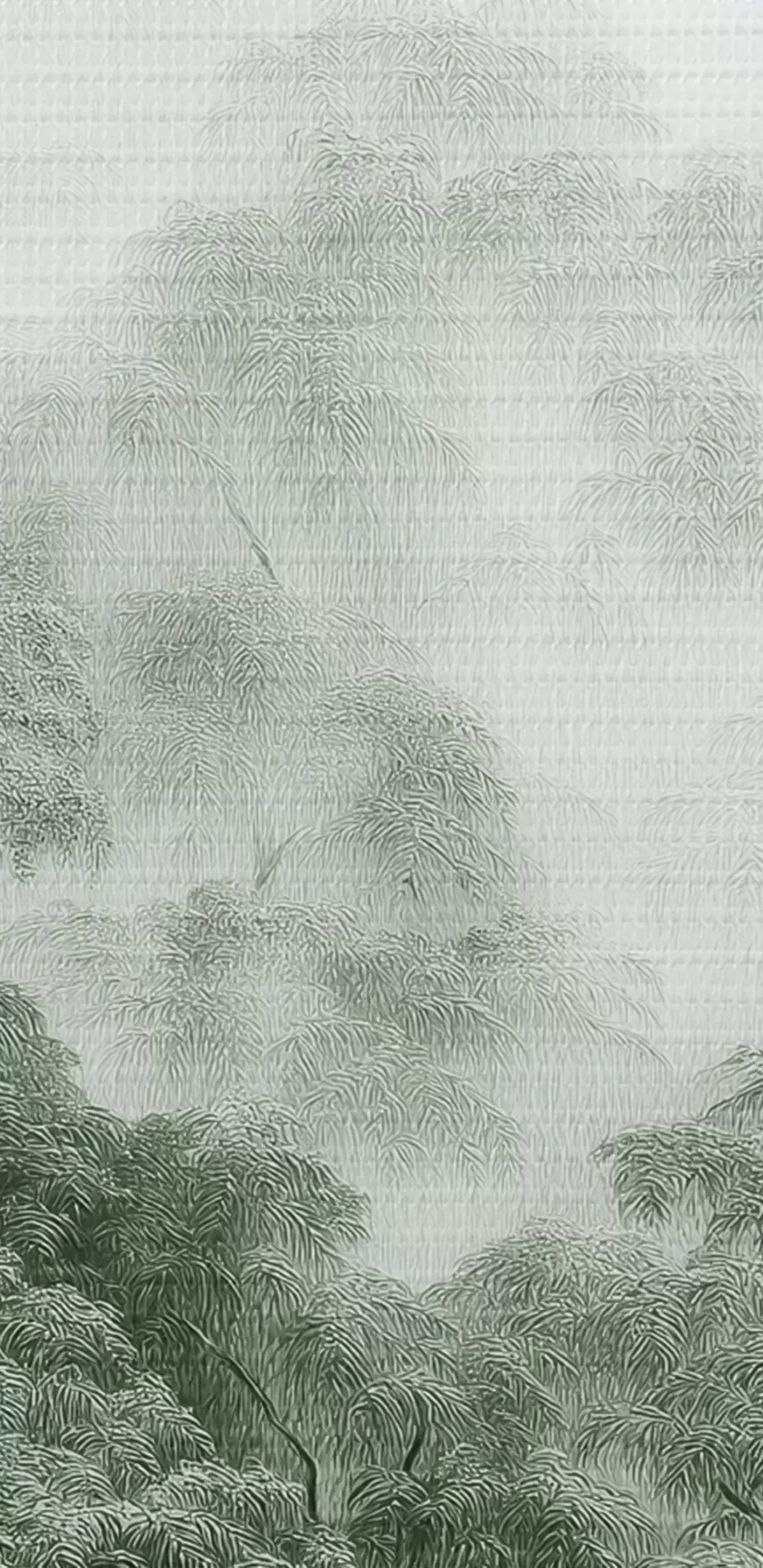 Gemälde Tropischer Wald im Nebel, Palmen, grüne Farben Art. s42371