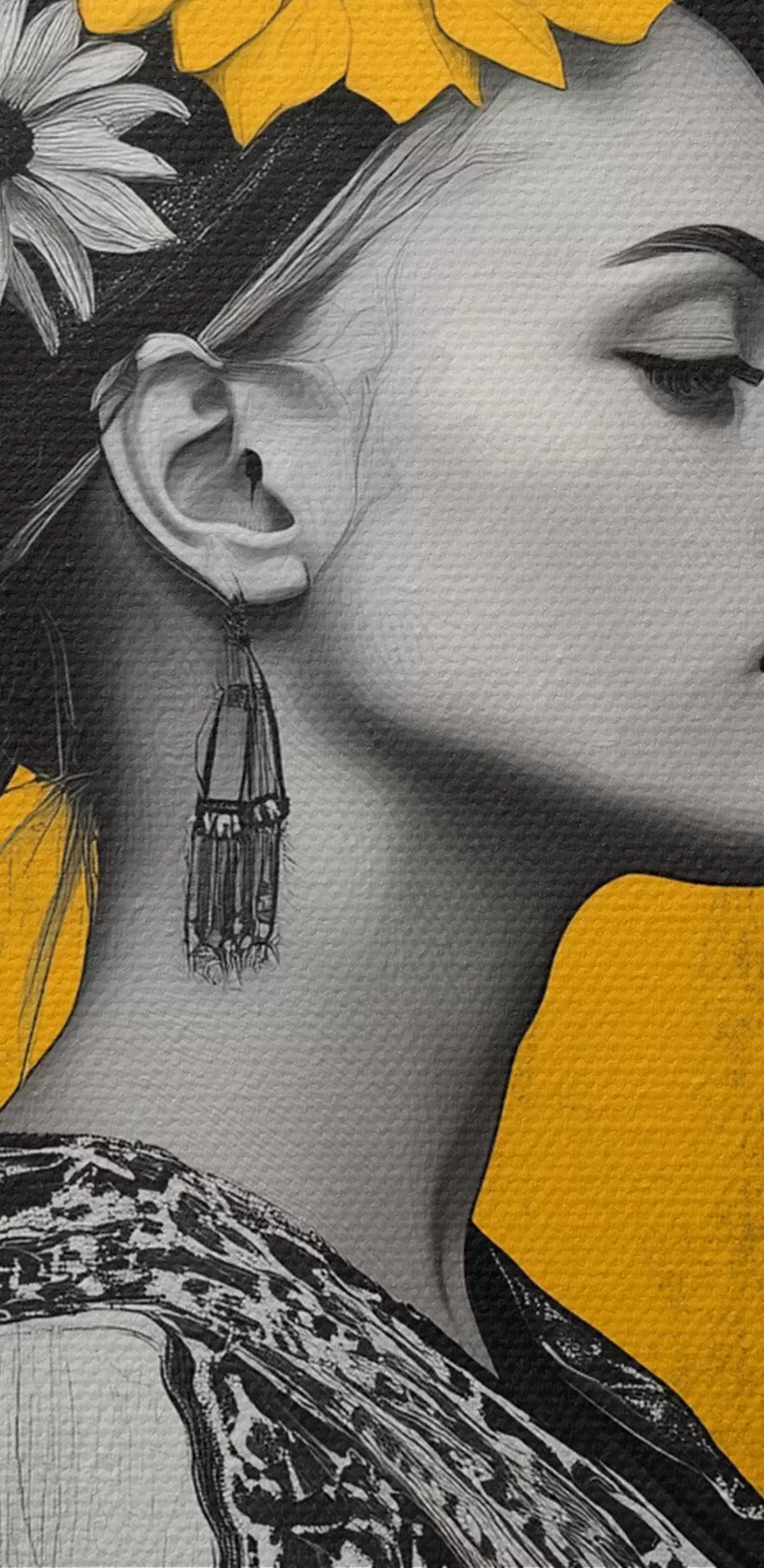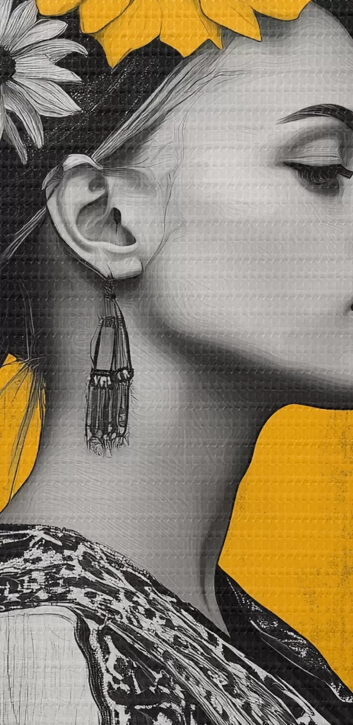 Gemälde Schöne Frauen in ethnischer Kleidung mit Sonnenblumenschlüsseln Art. s42378