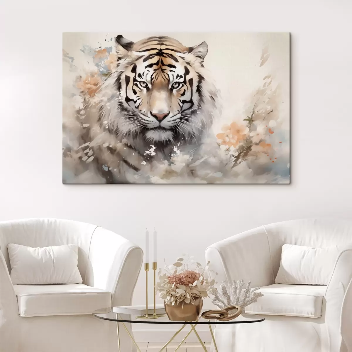 Gemälde Abstraktes Porträt eines Tigers zwischen Flecken Art. s42421