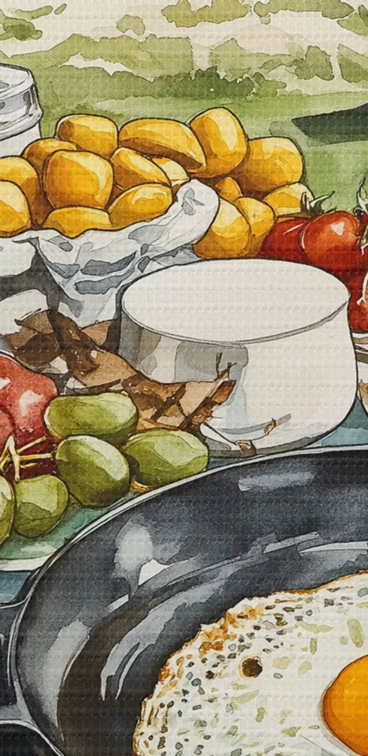 Gemälde Schöne Aquarell-Stil Frühstück, van Leben, Camping, Berge Art. s42429
