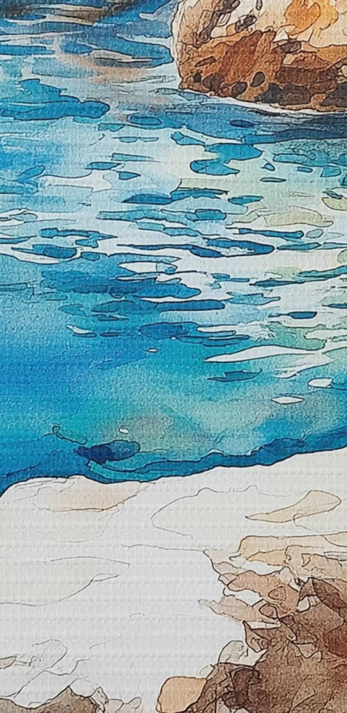 Fototapete Aquarell Seeseite mit Tassen Kaffee, Sommer s42449