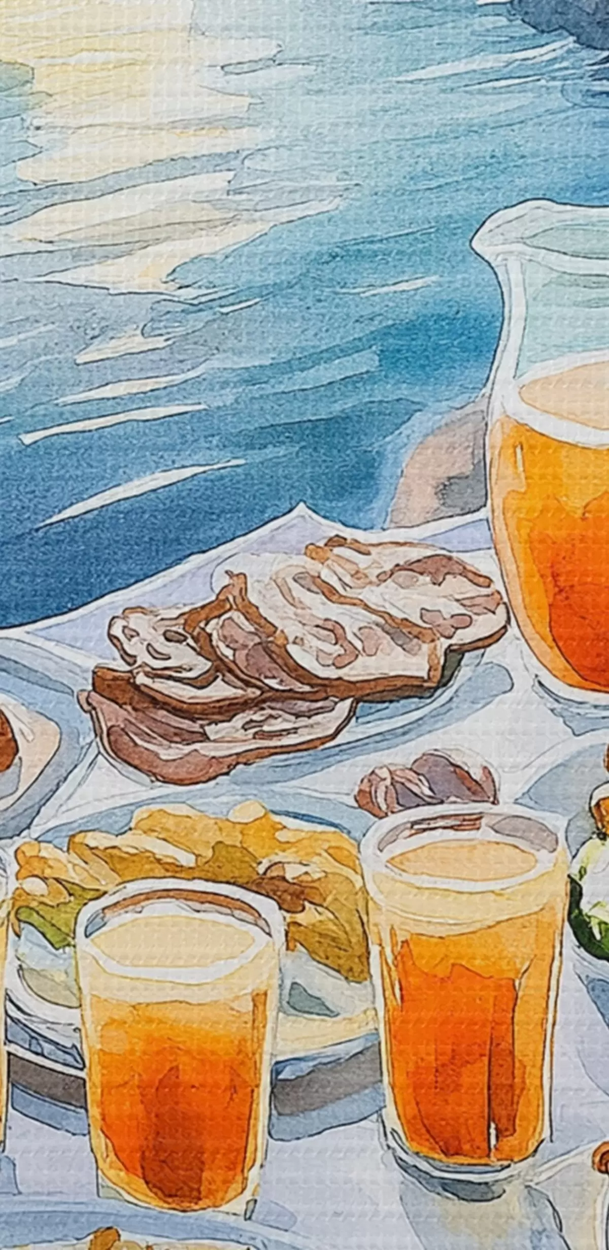 Fototapete Romantische Berufung in Griechenland, Aquarellstil, Frühstück, Sonnenaufgang s42453