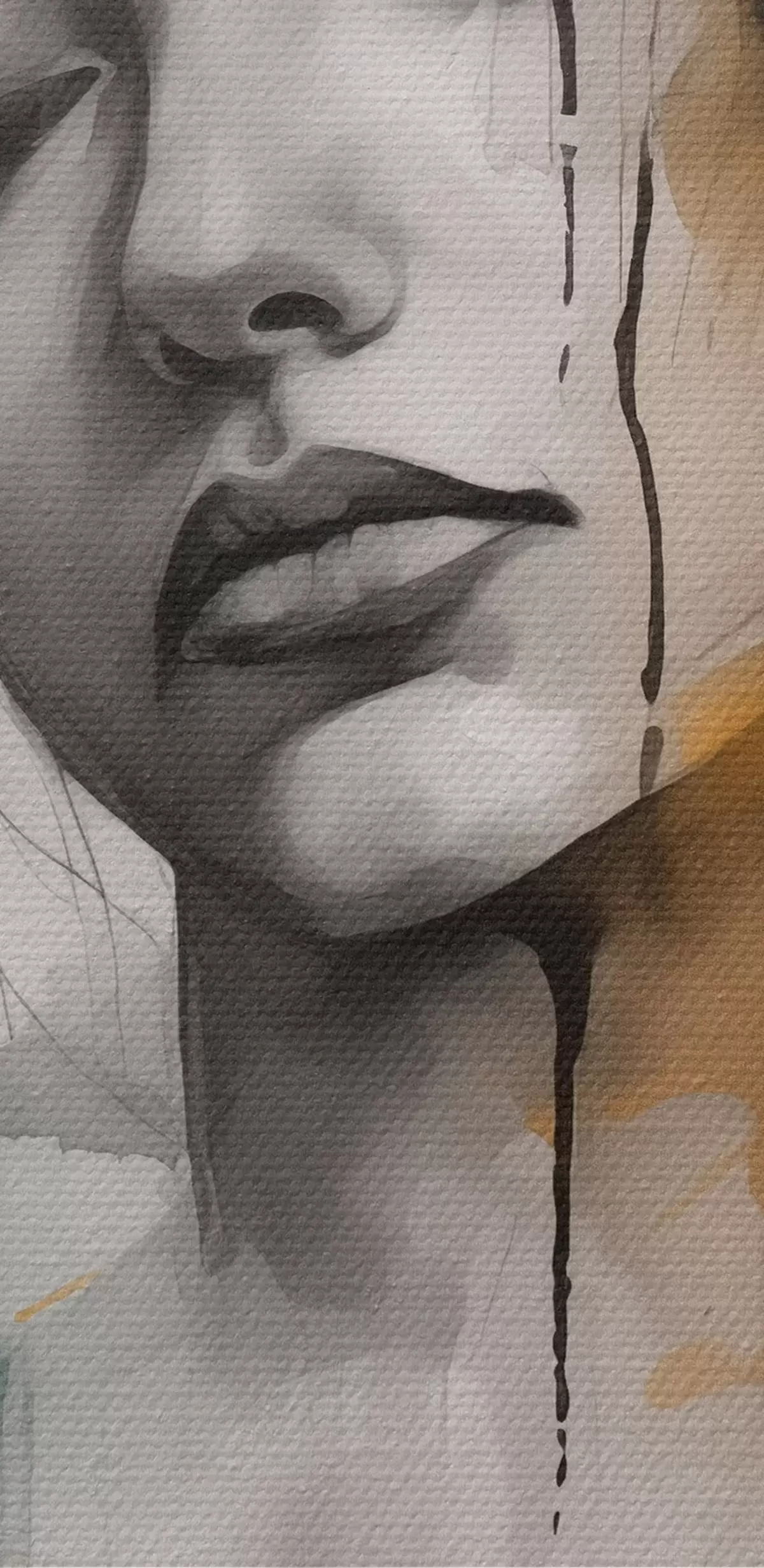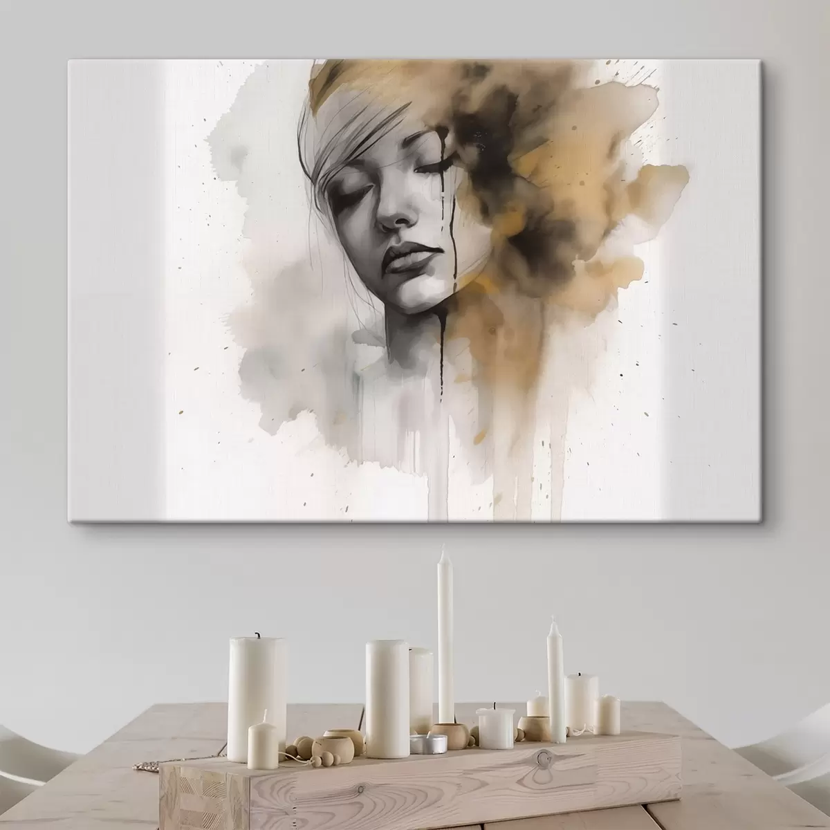 Gemälde Porträt eines Mädchens in Aquarelltechnik mit abstrakten Schatten Art. s42474