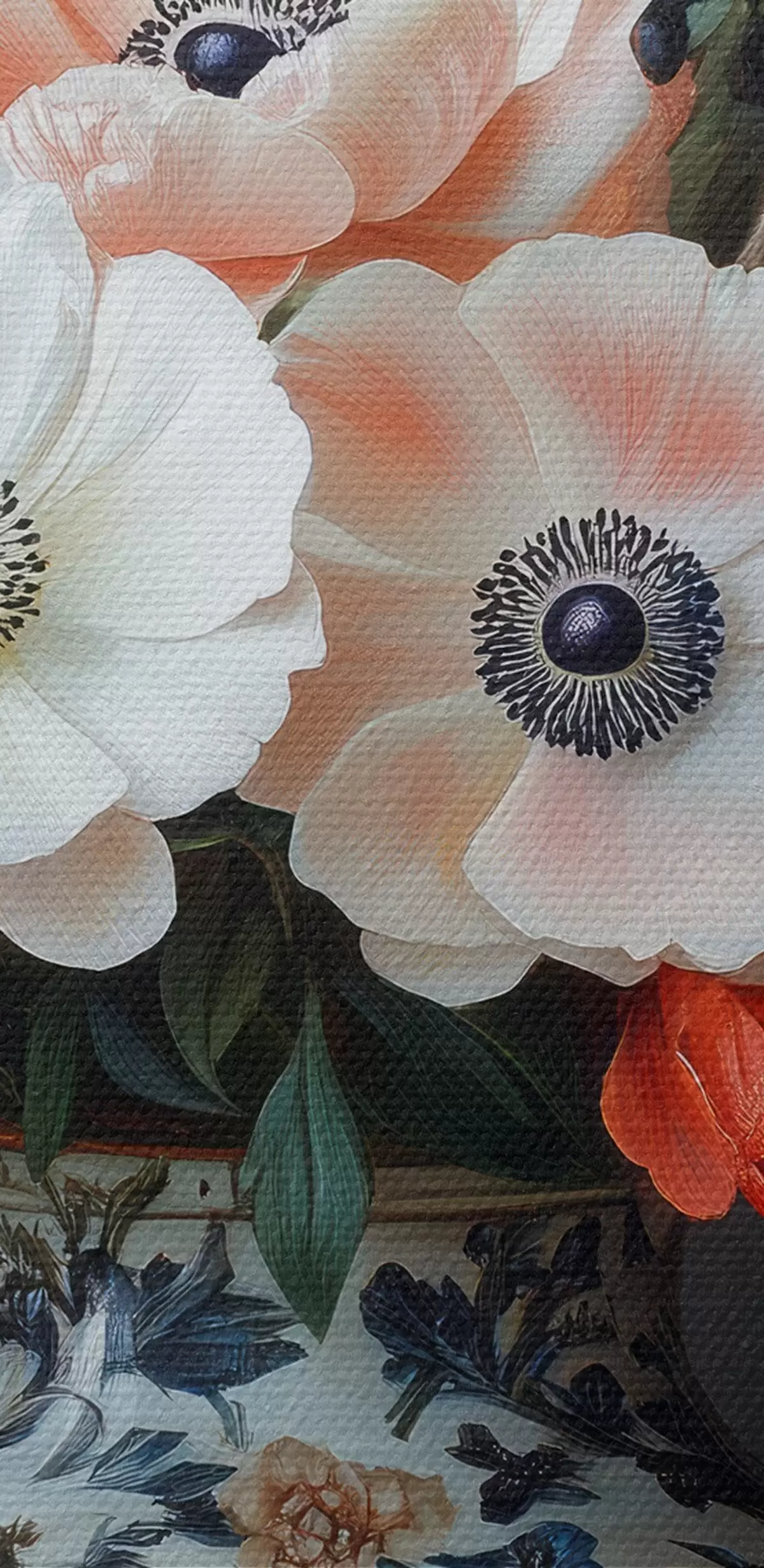 Drei Materialtypen stehen zur Verfügung: Economic Canvas - ein dichtes und haltbares Material für den Digitaldruck, identisch mit Malerleinwand, wasserfeste Oberfläche, realistische Wiedergabe von Details, mittelkörniges Material. Premium Canvas - die Textur ähnelt der einer Malerleinwand (verwobene kleine Fäden). Weiche, detaillierte Wiedergabe des Bildes auf einer matten Oberfläche. Eco-Premium - hochwertiges Gewebe aus 100% Baumwolle. Dank der natürlichen Baumwollfasern ist das Material langlebig und verschleißfest. Hervorragende Farbwiedergabe und Detailtreue.