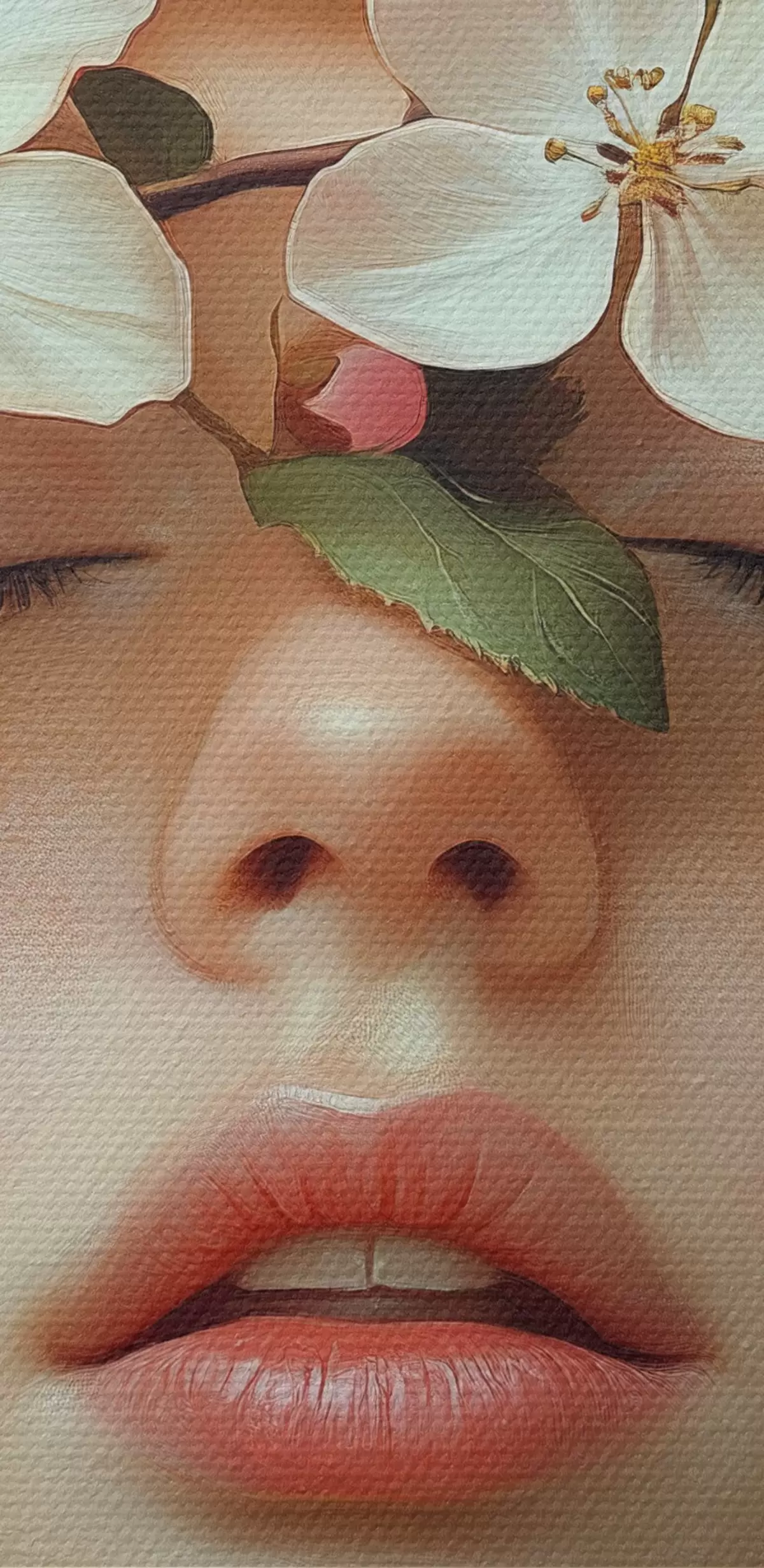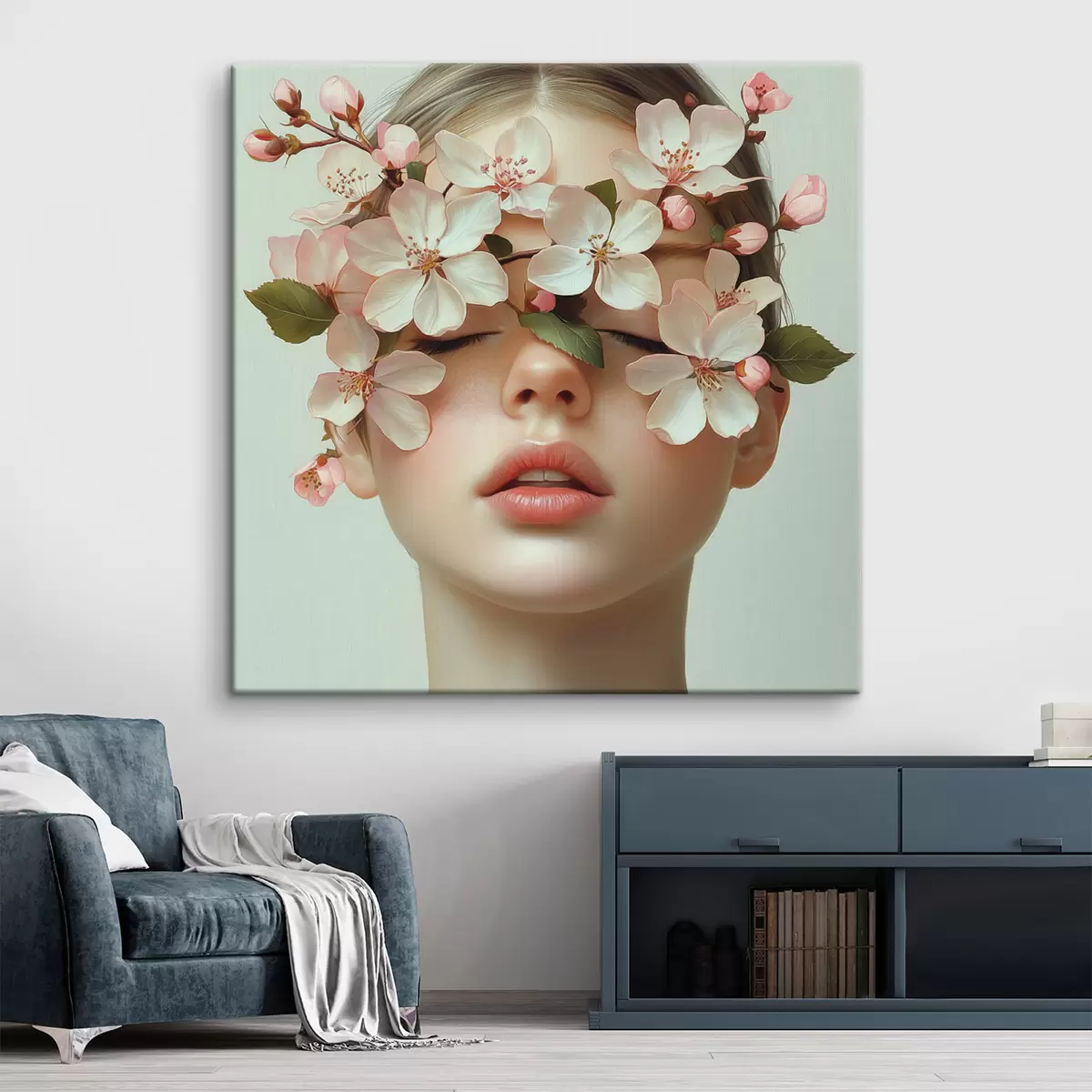 Gemälde Porträt eines Mädchens mit Blumen im Gesicht Art. s42506