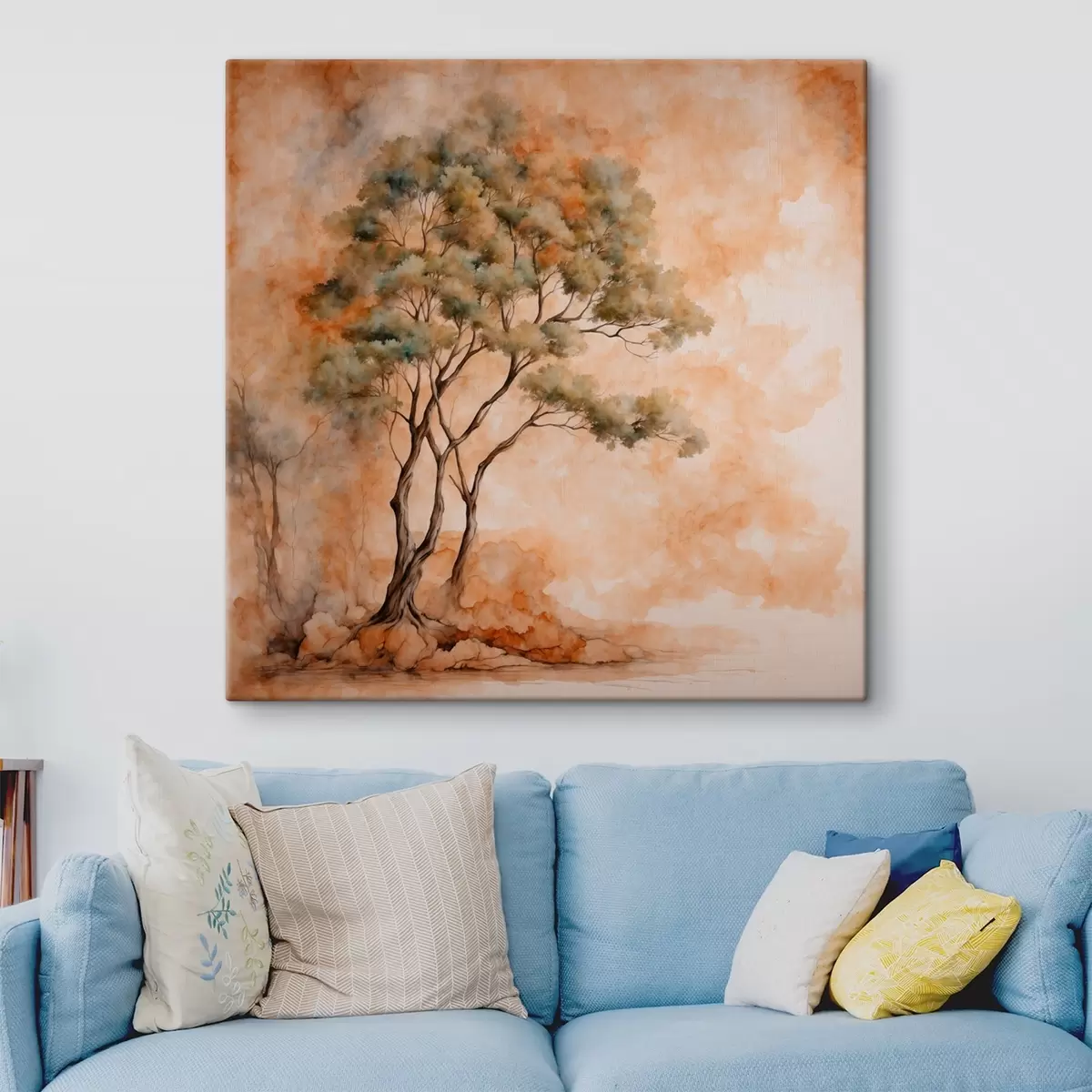 Gemälde Baum auf orange und weißem Hintergrund in Aquarellmalerei Stil Art. s42514