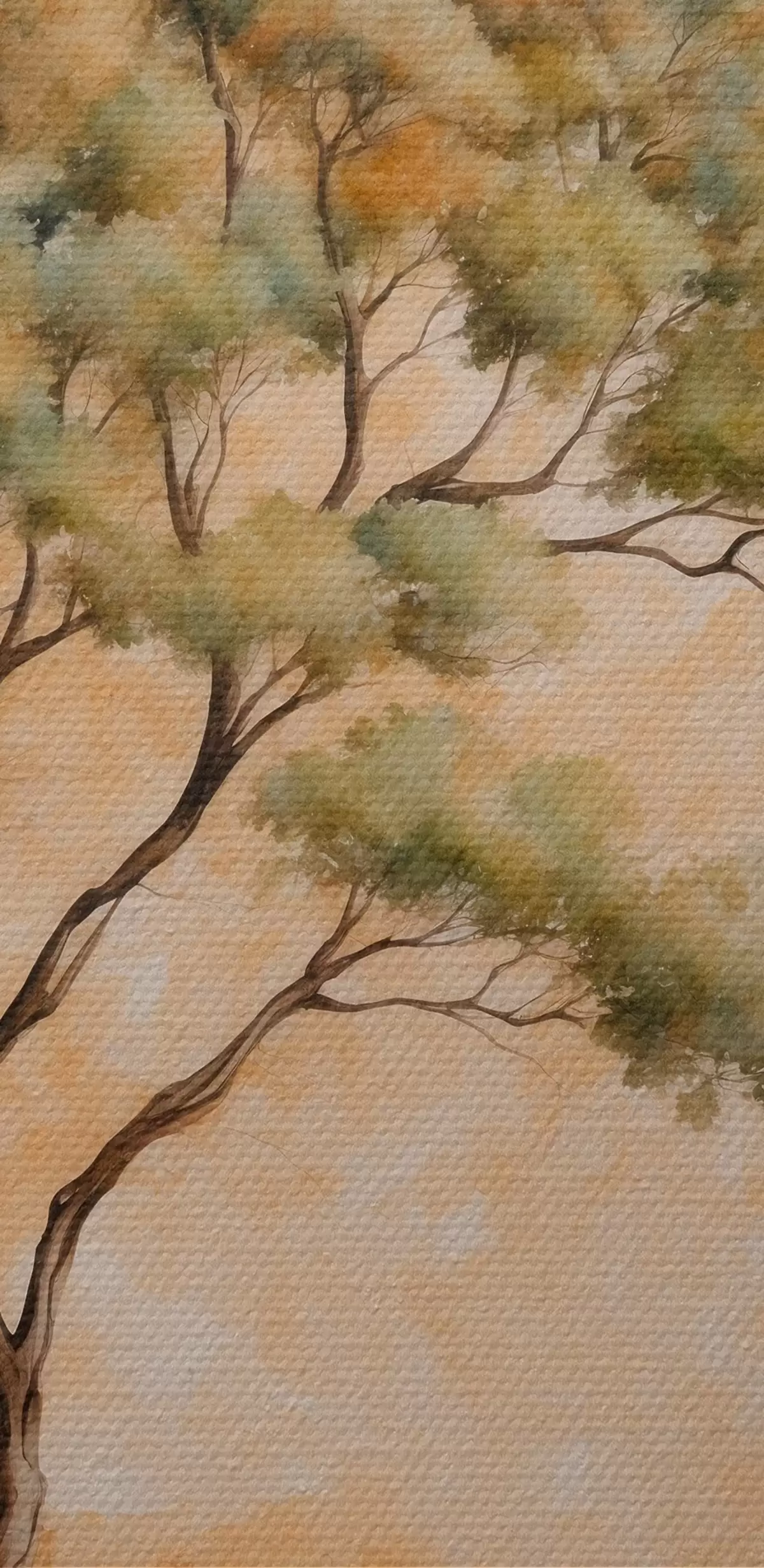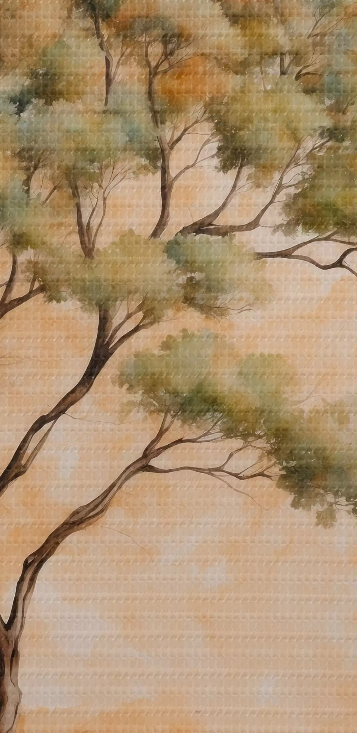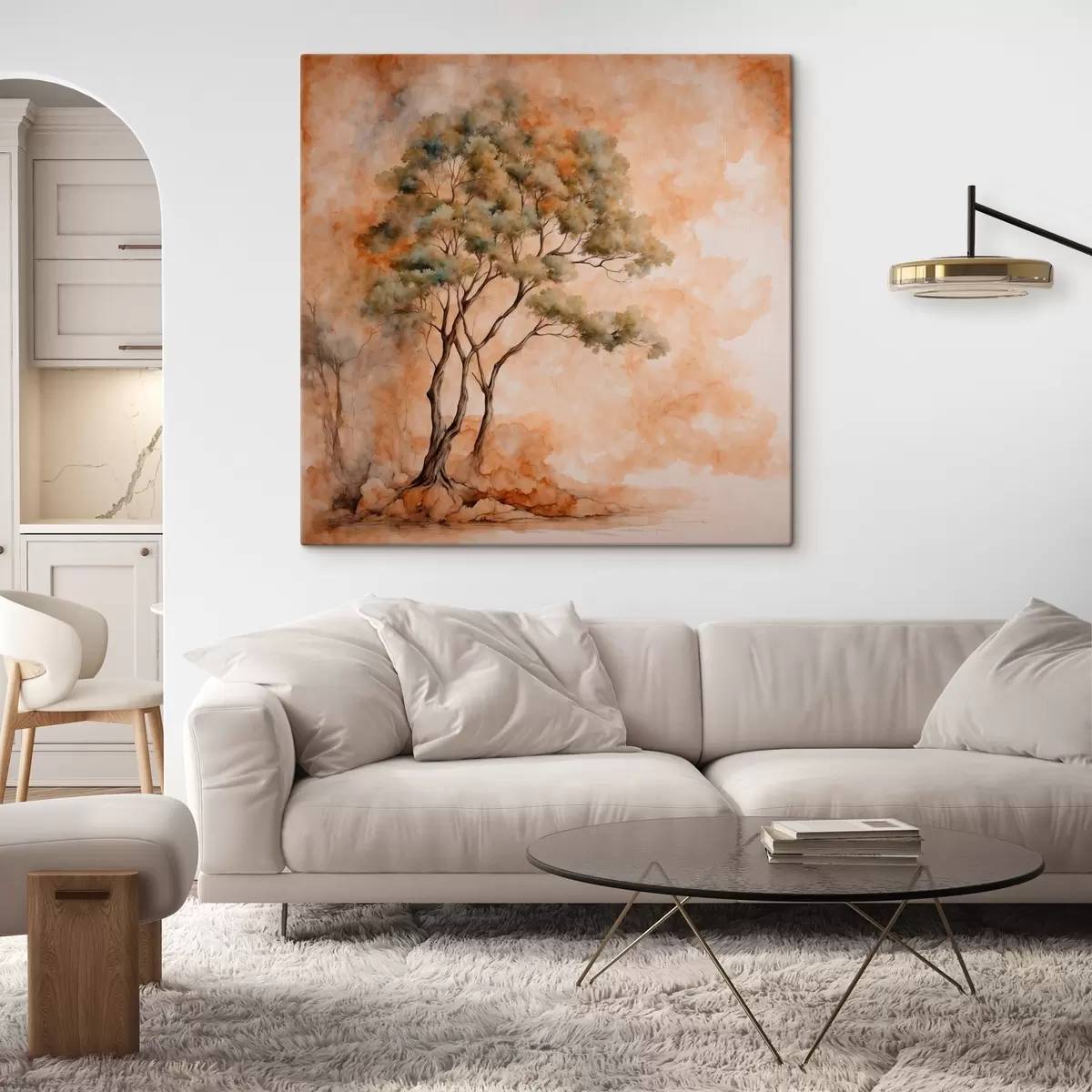 Fototapete Baum auf orange und weißem Hintergrund in Aquarellmalerei Stil s42514