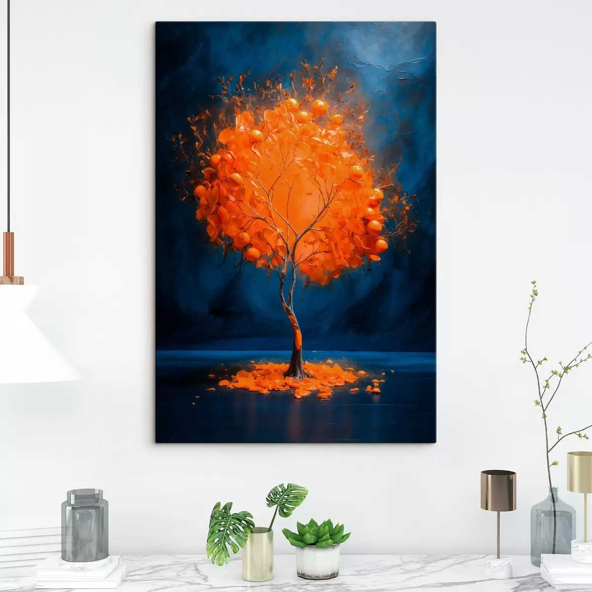 Gemälde Orange Baum auf blauem Hintergrund in Acrylmalerei Stil Art. s42525