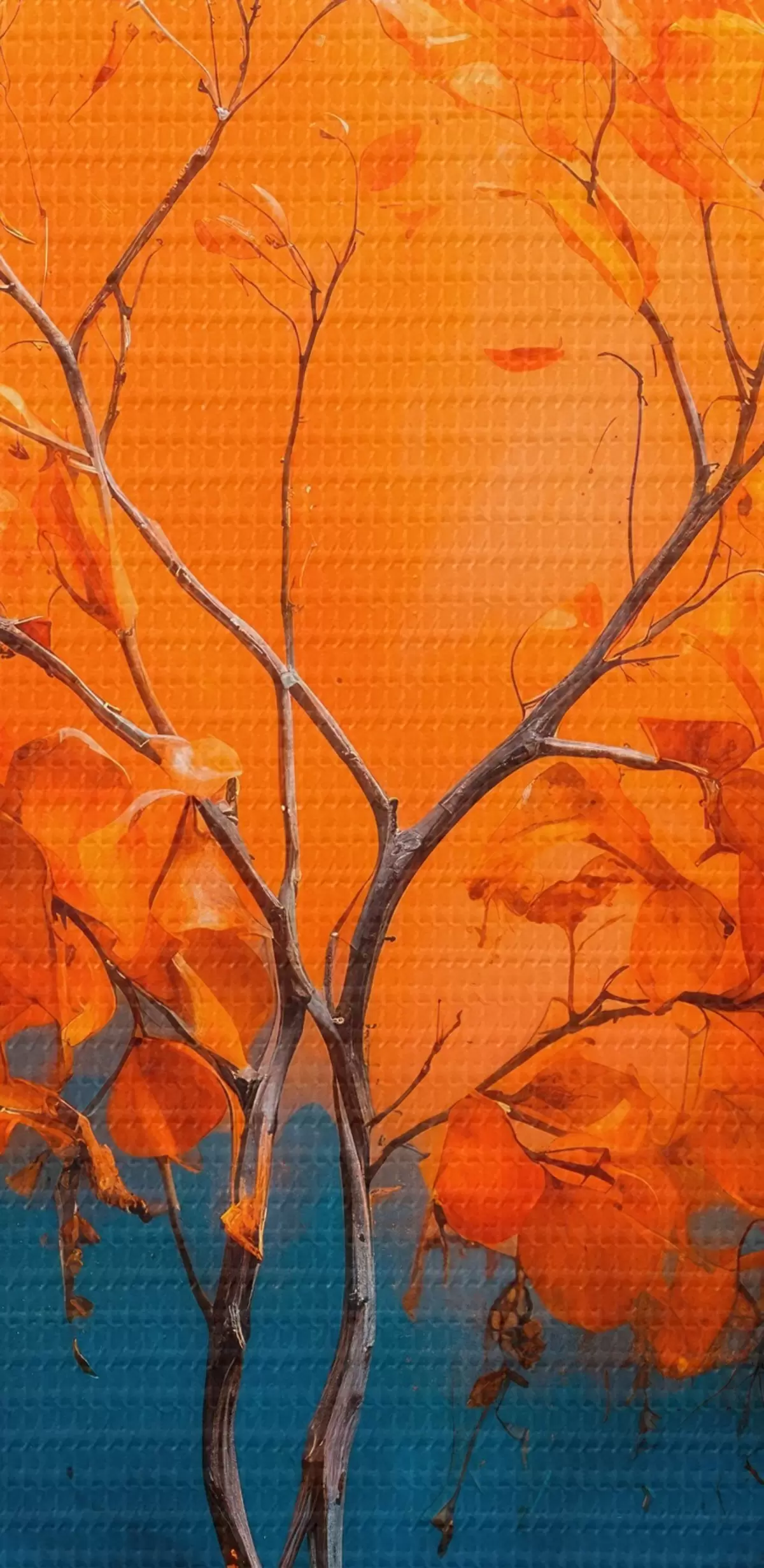Fototapete Orange Baum auf blauem Hintergrund in Acrylmalerei Stil s42525