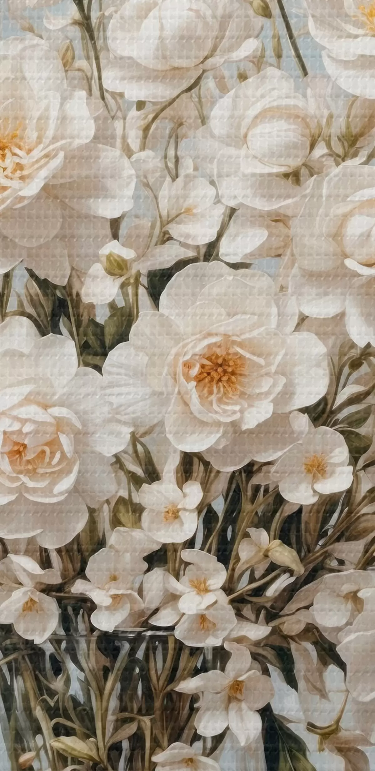 Fototapete Weiße Blumen in transparenter Vase in Acrylmalerei Stil s42545