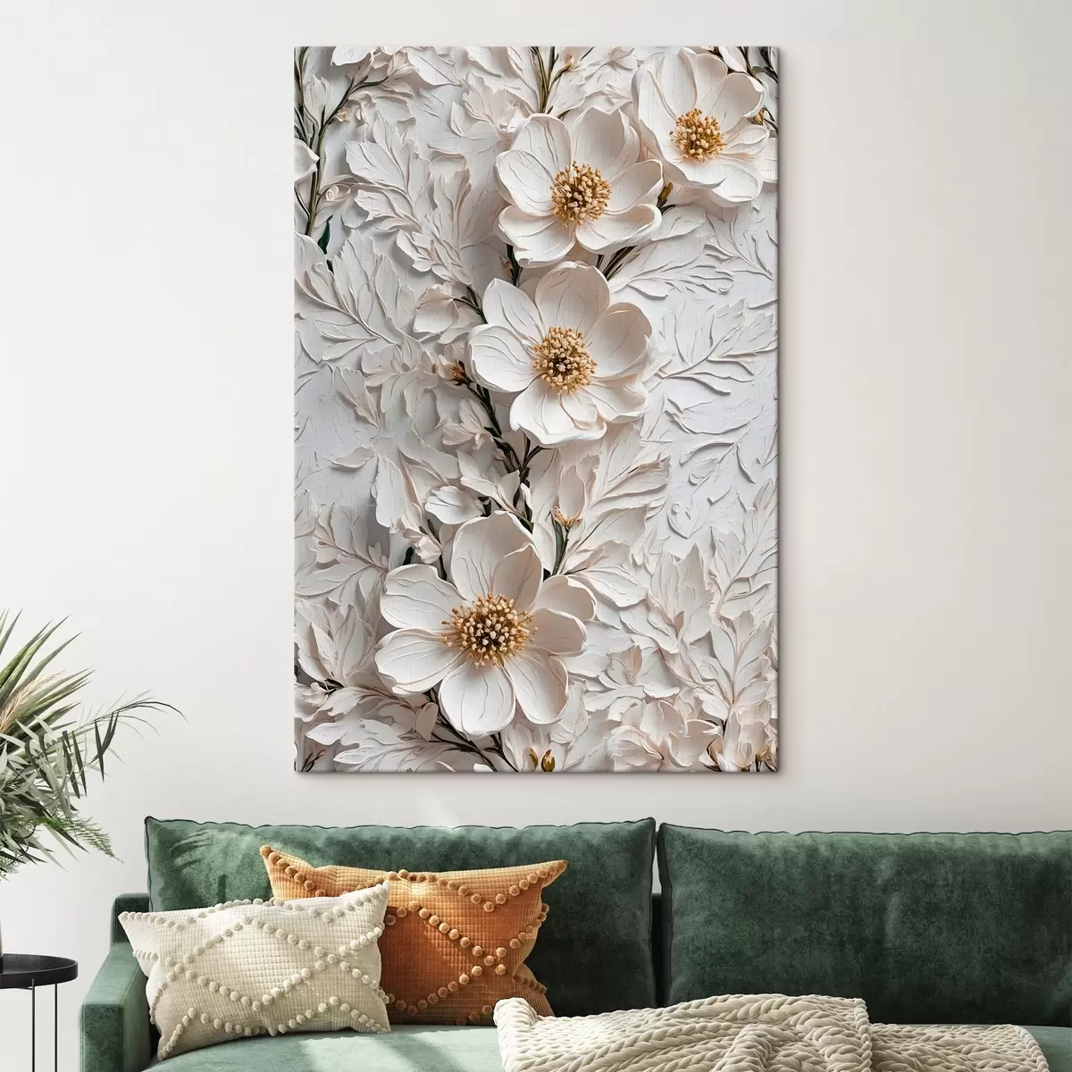 Gemälde Weiße Blumen und Stängel im Stil der Ölmalerei Art. s42546