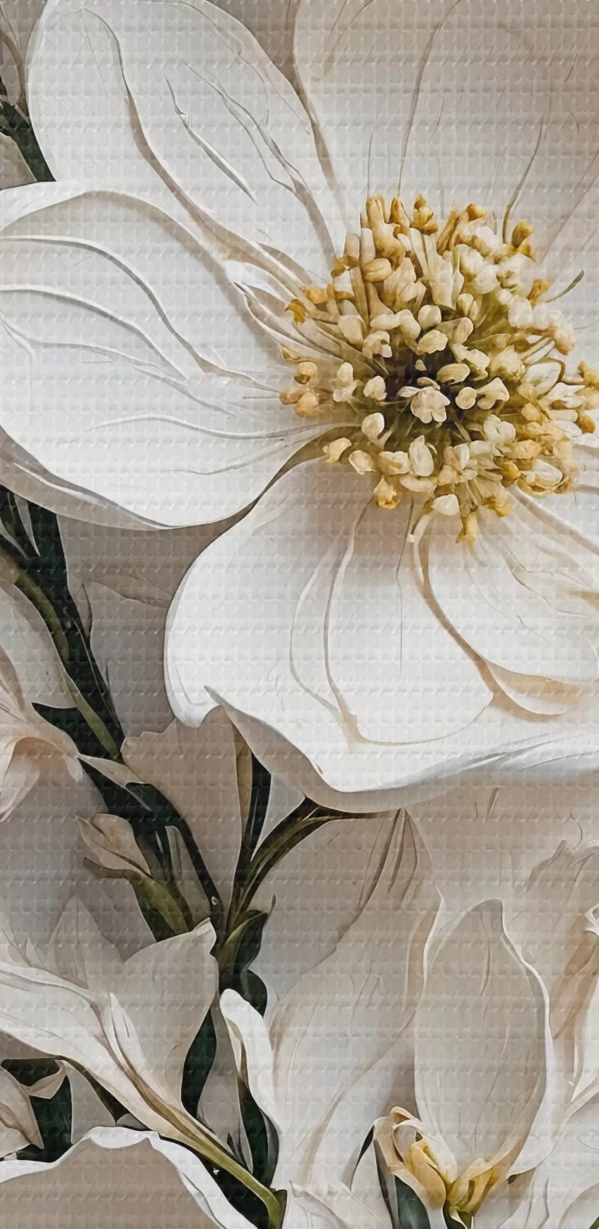 Fototapete Weiße Blumen und Stängel im Stil der Ölmalerei s42546