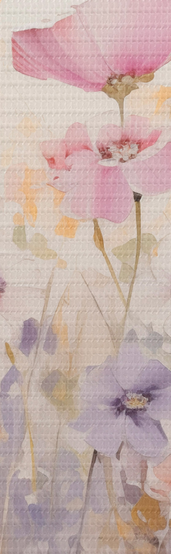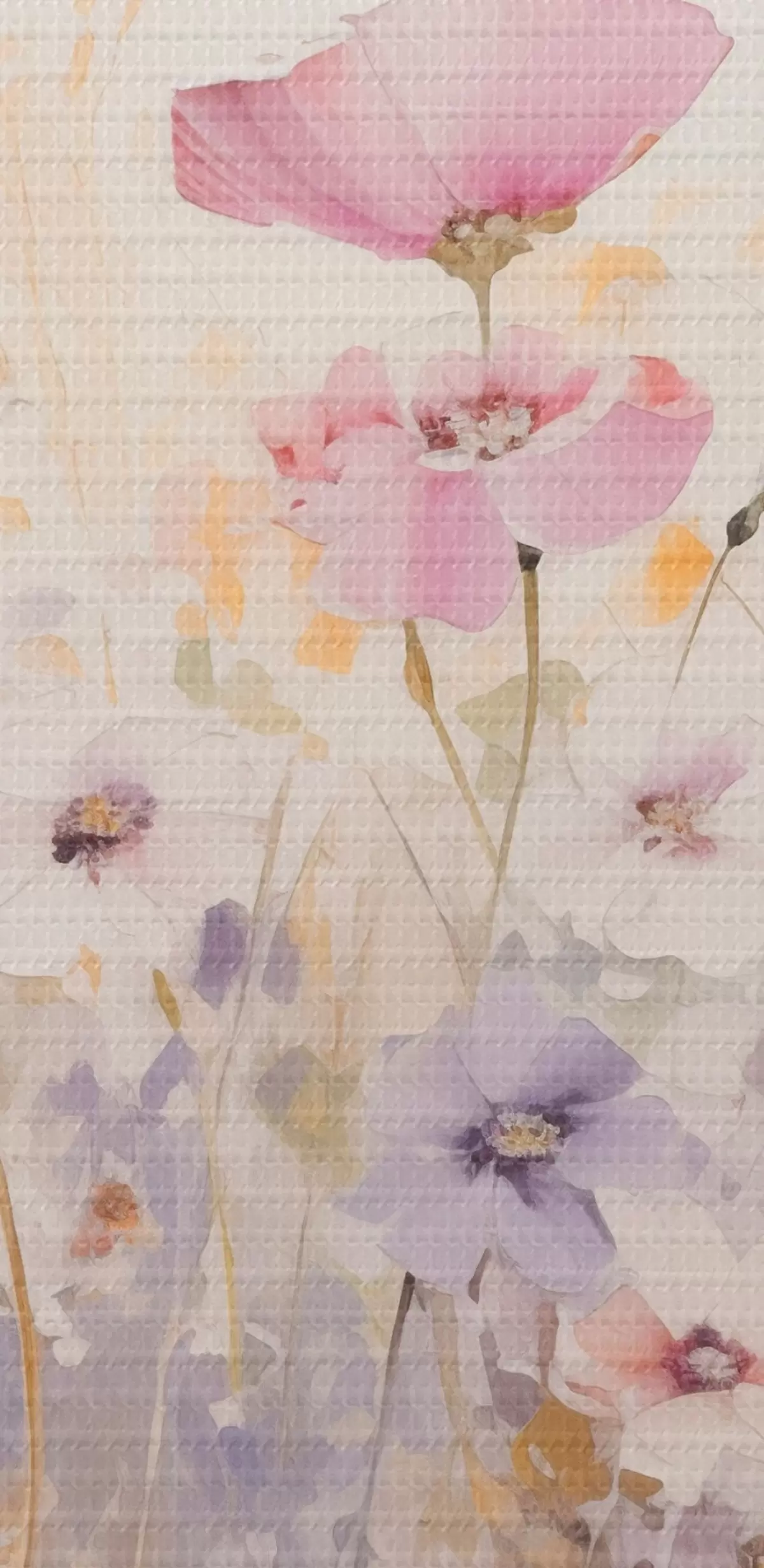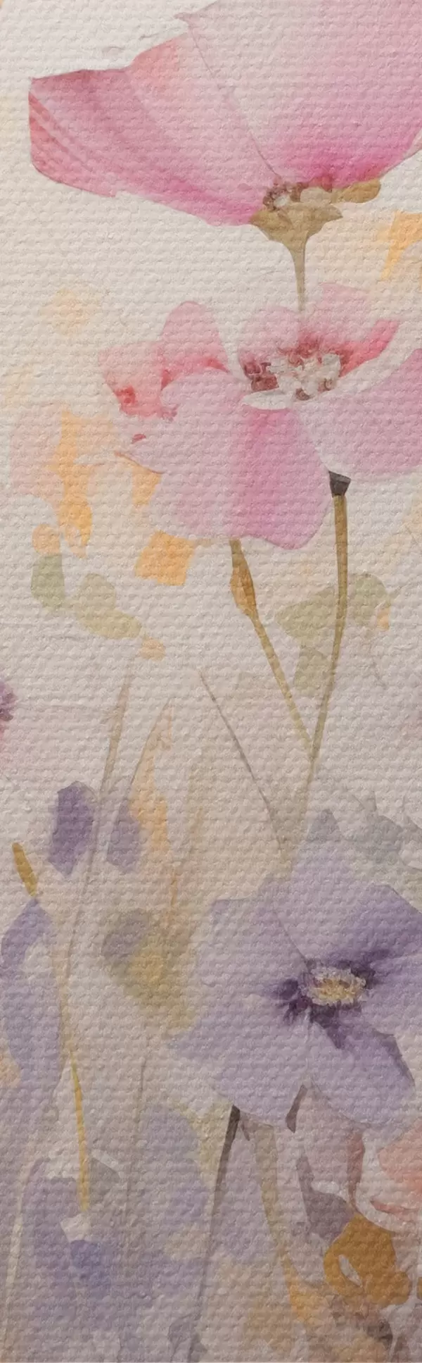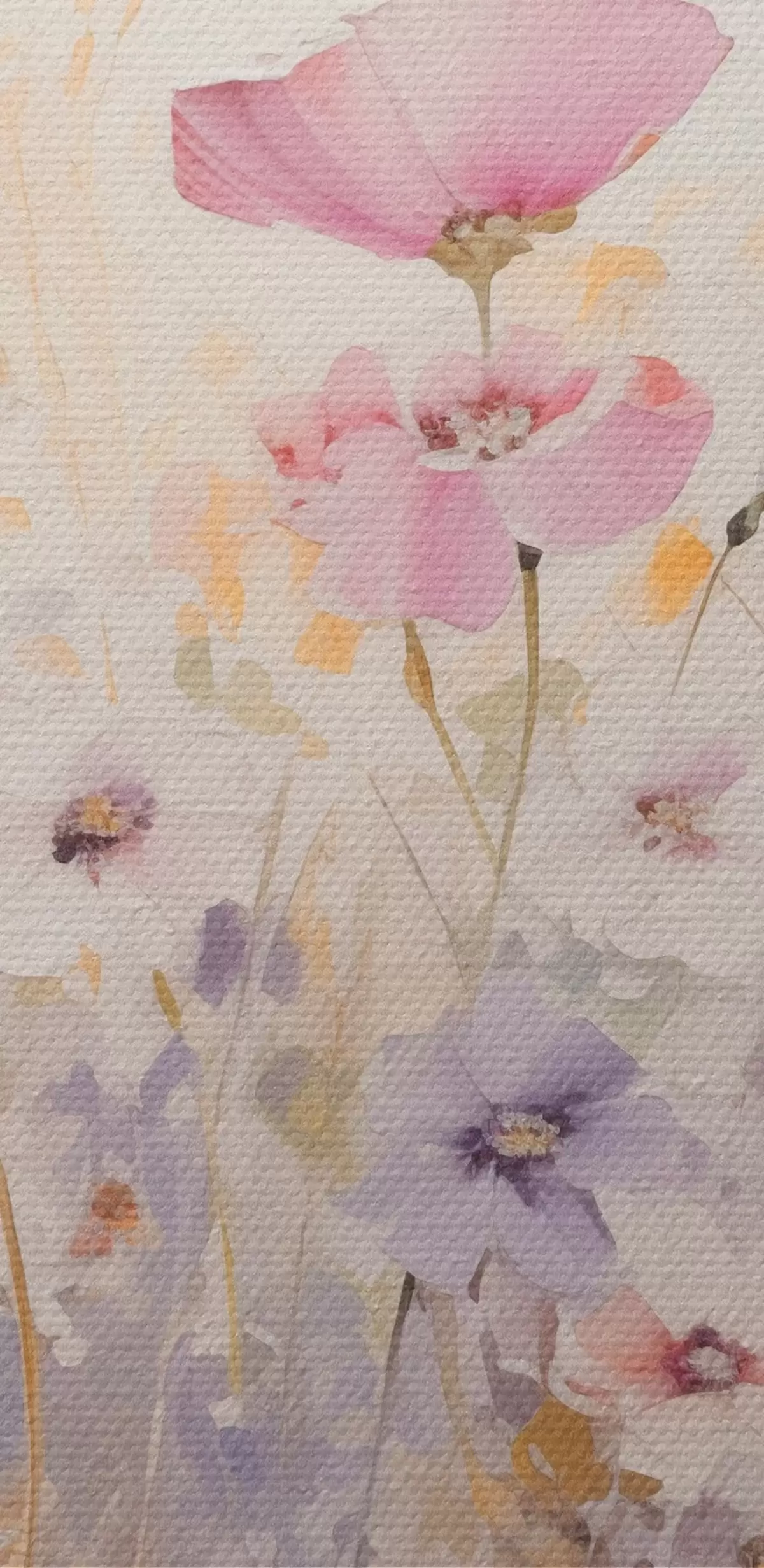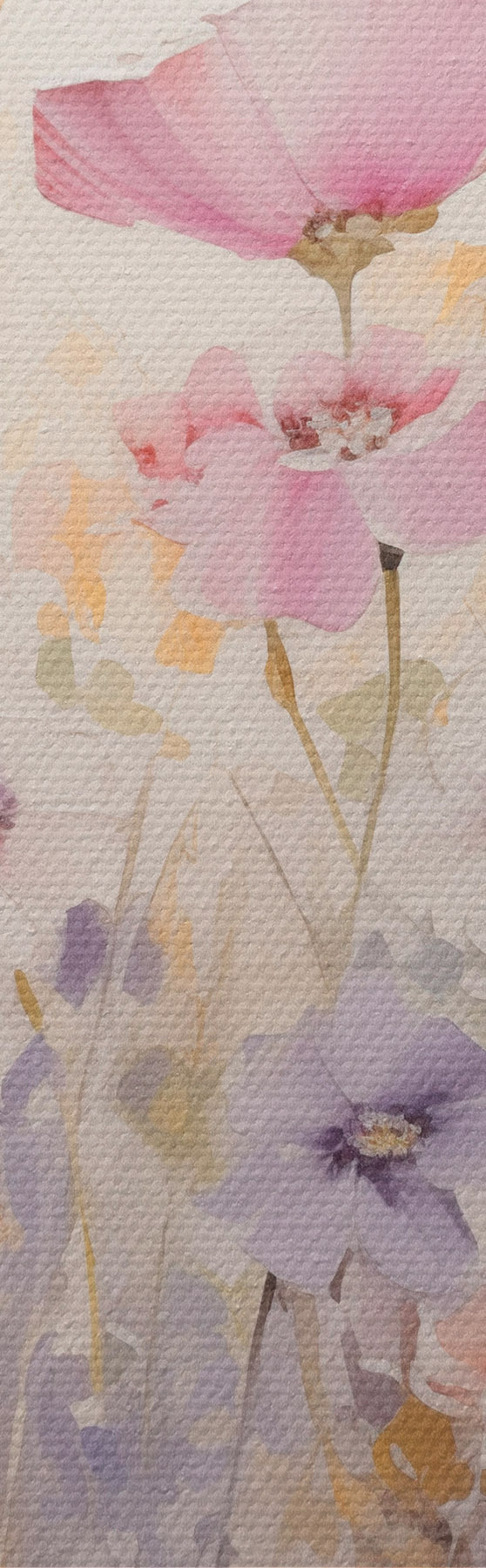 Fototapete Eine Wiese mit Aquarellblumen in zarten Rosa-, Lila- und Weißtönen, die eine Atmosphäre der Leichtigkeit und Harmonie schaffen. s42557