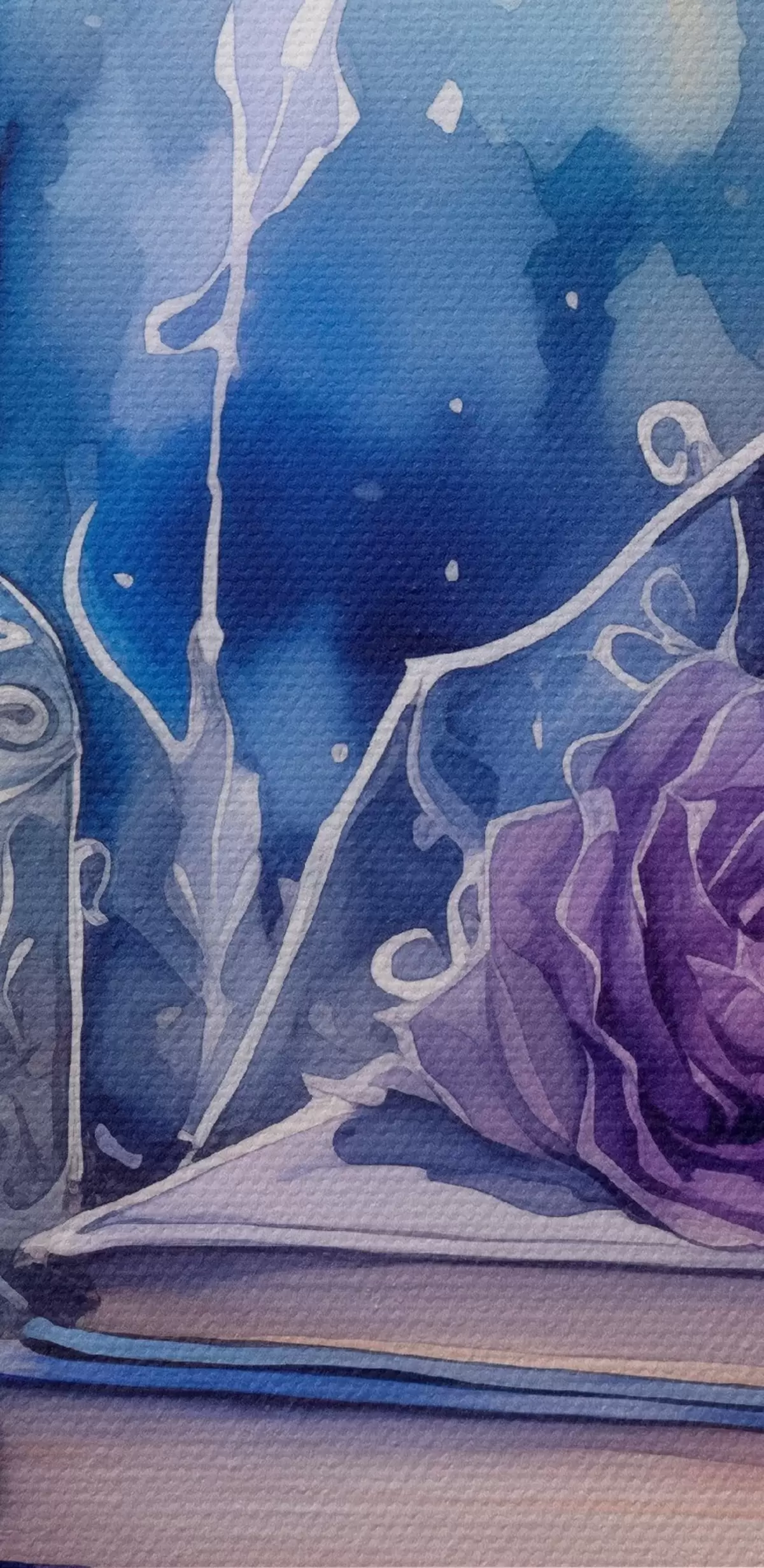 Gemälde Ein Stillleben mit alten Büchern, Glasflaschen in blau-violetten Tönen und dekorativen Blumen. Art. s42574