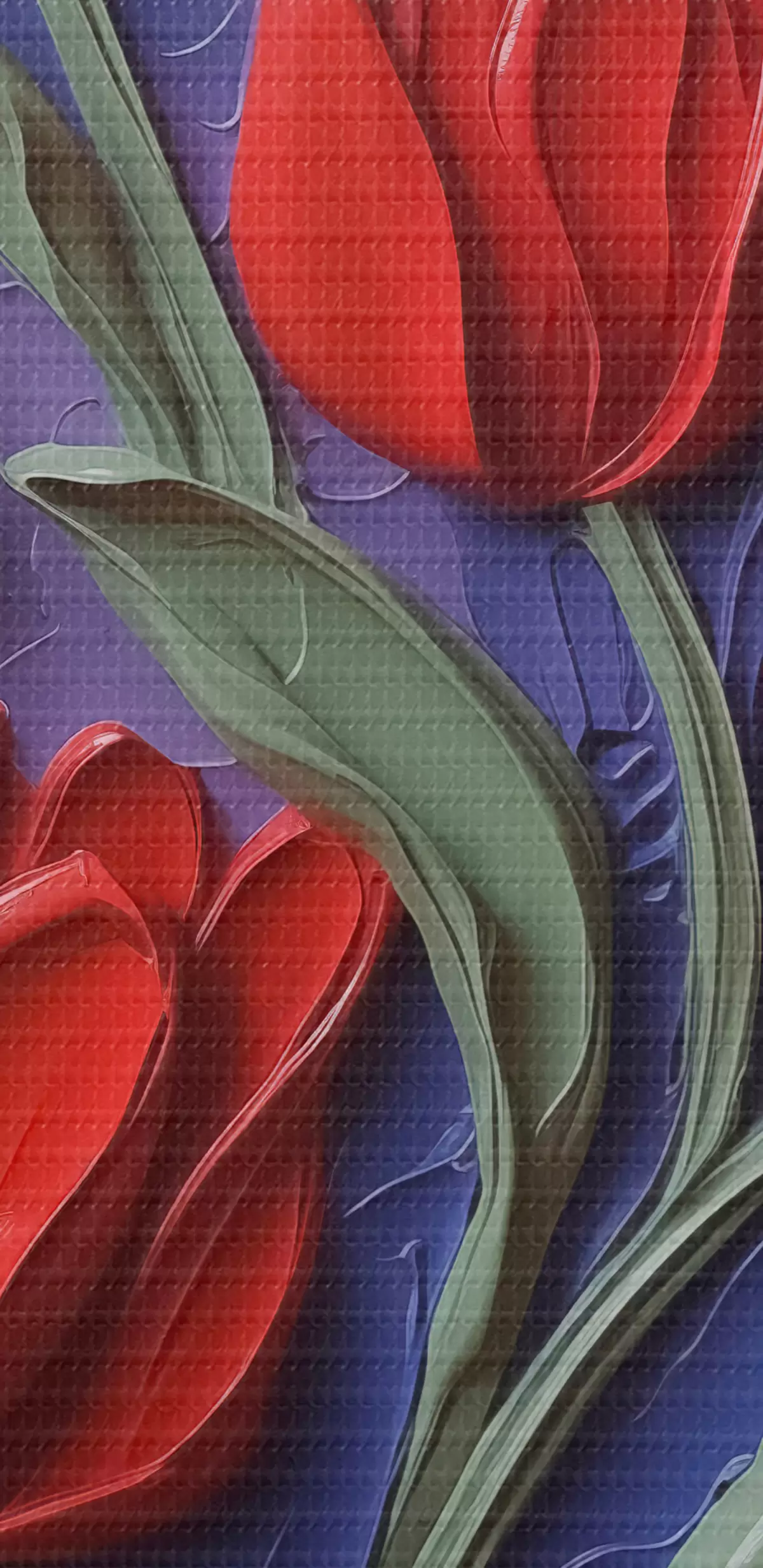 Gemälde Rote Tulpen auf lila Imitationspinselstrichen Art. s42584