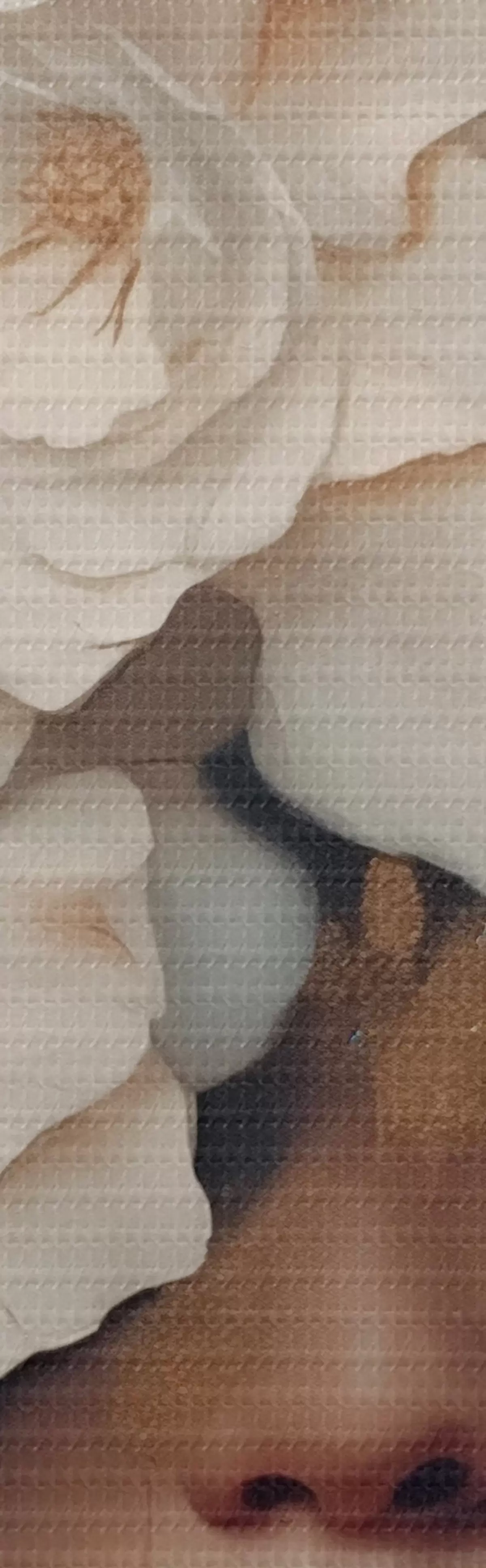 Das Bild kann vorsichtig mit einem trockenen, weichen Tuch oder Schwamm abgewischt werden; es wird nicht empfohlen, feuchte Produkte zu verwenden. Die Verwendung eines feuchten Schwamms ist nur zulässig, wenn das Bild lackiert wurde.