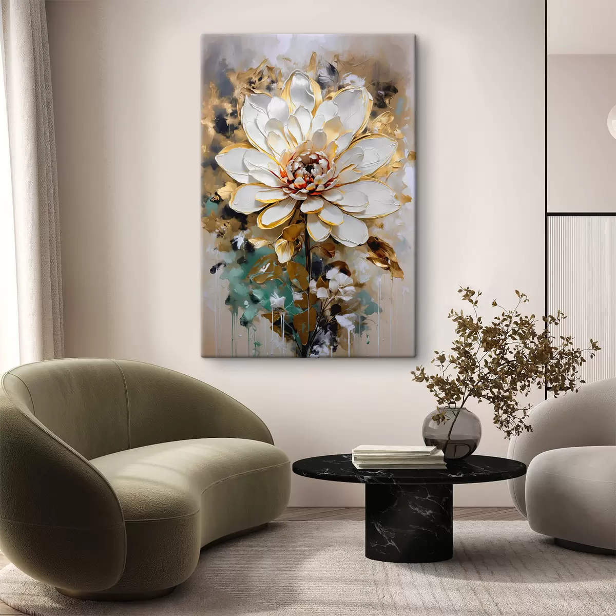 Gemälde Abstrakte Blume mit imitierten Farbspritzern auf dem Hintergrund Art. s42707