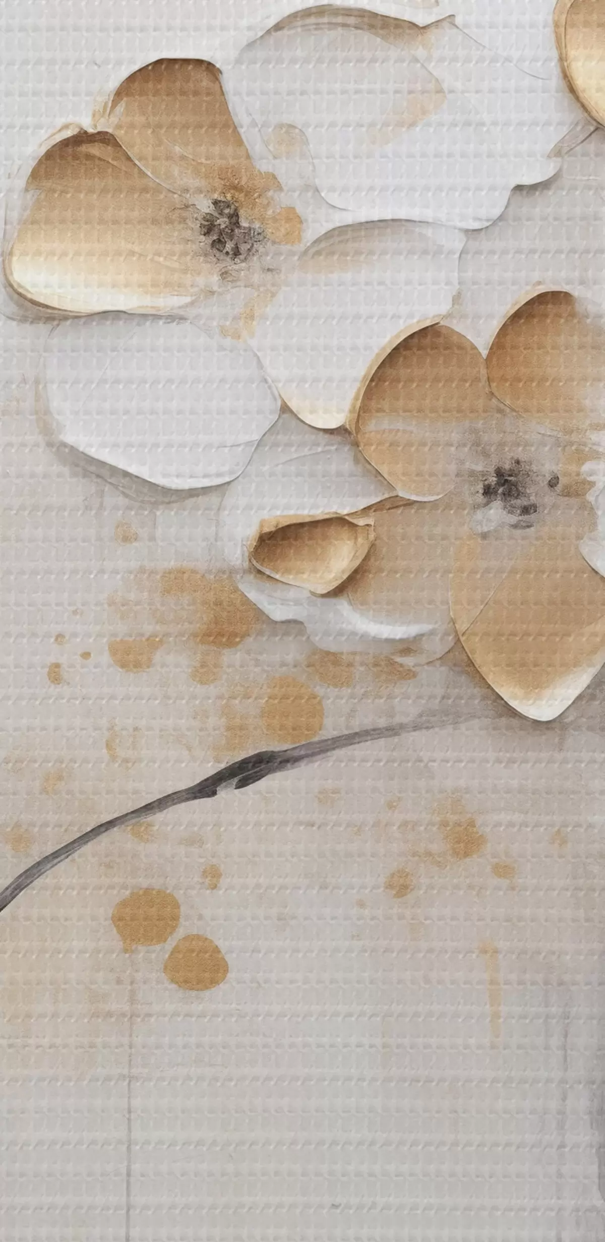 Fototapete Blumen mit strukturierten Blütenblättern auf einem weichen, gedämpften Hintergrund mit abstrakten Farbspritzern und vertikalen Linien  s42713