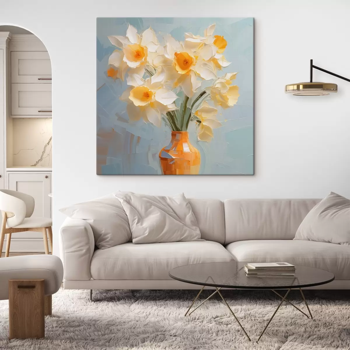 Fototapete Blumenstrauß von Narzissen in einer Vase Nachahmung der Malerei s42749