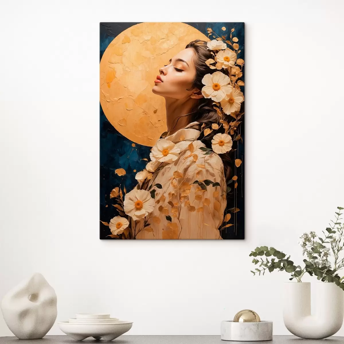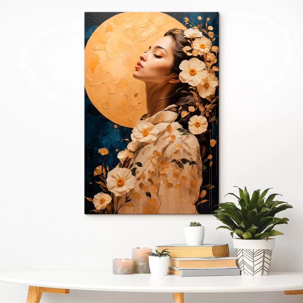 Gemälde Mädchen mit Blumen vor dem Mond Art. s42774