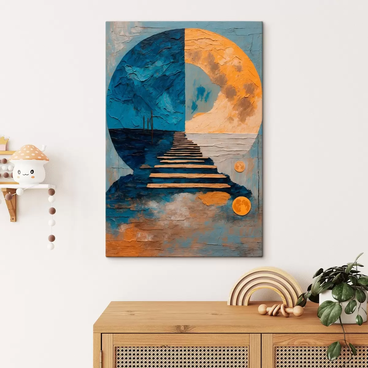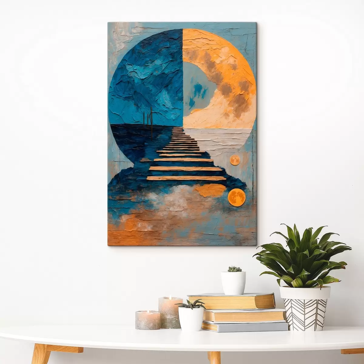 Fototapete Pfad zu zwei Mondphasen im Stil der Ölmalerei s42776