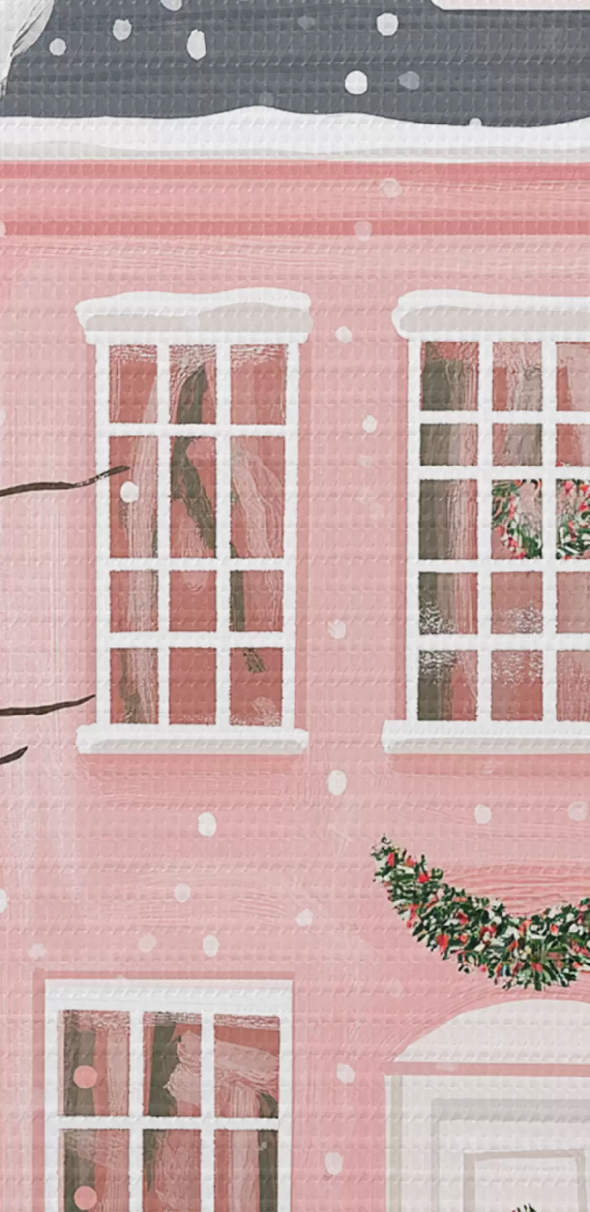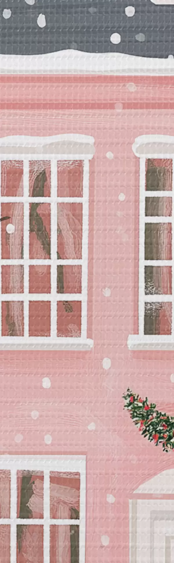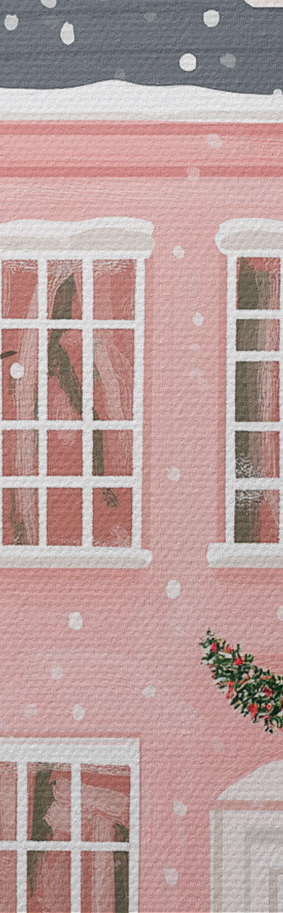 Fototapete Hübsche rosa Häuser, Kiefern, Winterlandschaften  s42791