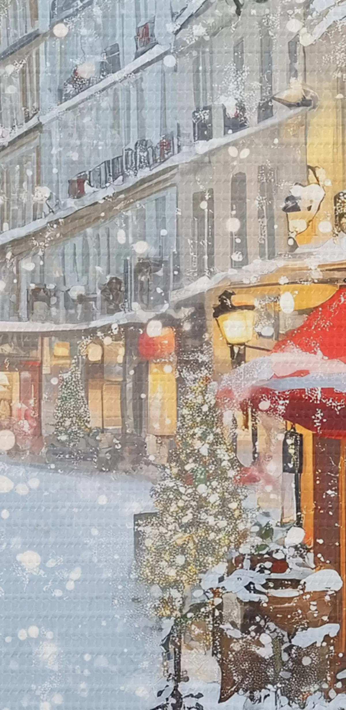 Fototapete Gemütliches Wintercafé, Tassen Kaffee, Acryl-Stil, alte Stadtarchitektur  s42795