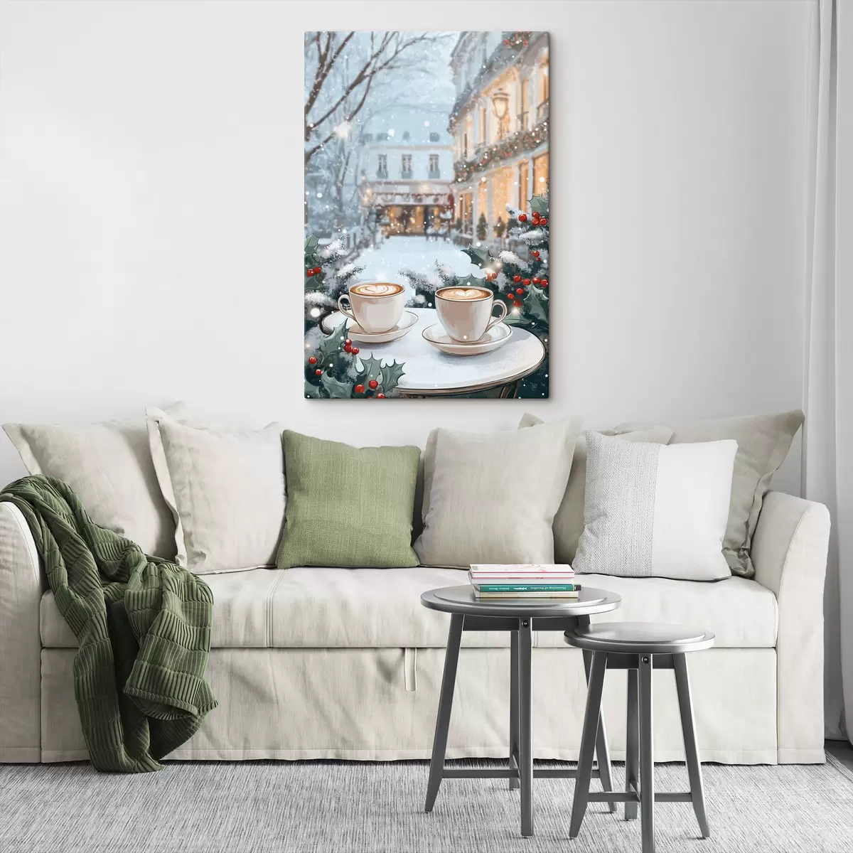 Gemälde Tassen Kaffee im gemütlichen Cafe, Winterästhetik, Boho-Stil Art. s42797