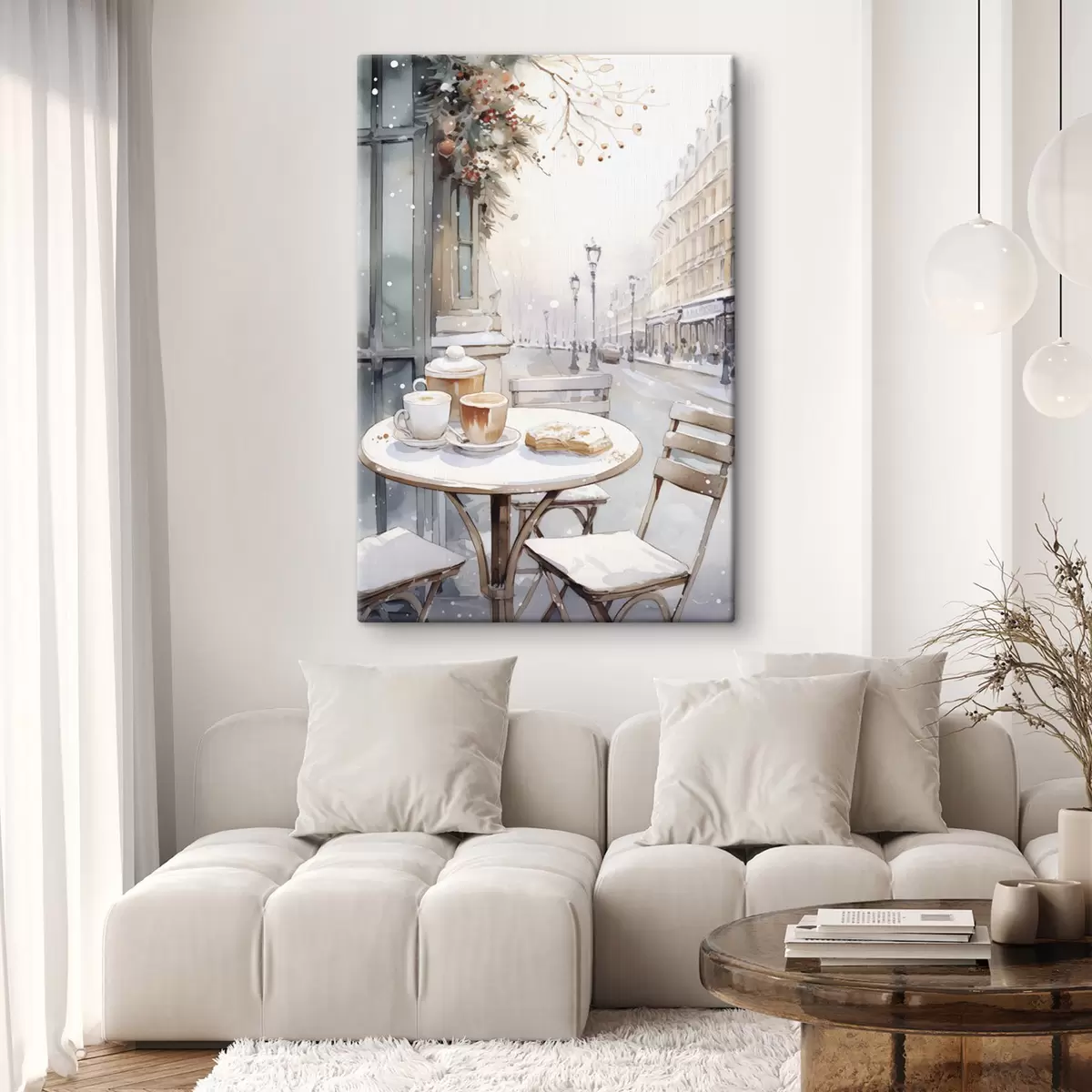 Gemälde Ästhetisches Straßencafé, Frankreich, frische Bäckerei, Zeichnung im Aquarellstil Art. s42798