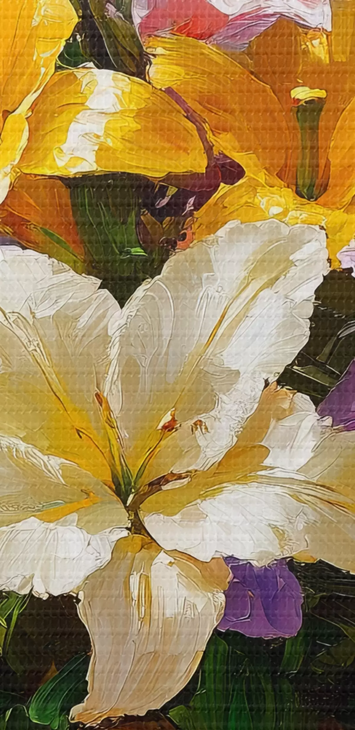 Drei Materialtypen stehen zur Verfügung: Economic Canvas - ein dichtes und haltbares Material für den Digitaldruck, identisch mit Malerleinwand, wasserfeste Oberfläche, realistische Wiedergabe von Details, mittelkörniges Material. Premium Canvas - die Textur ähnelt der einer Malerleinwand (verwobene kleine Fäden). Weiche, detaillierte Wiedergabe des Bildes auf einer matten Oberfläche. Eco-Premium - hochwertiges Gewebe aus 100% Baumwolle. Dank der natürlichen Baumwollfasern ist das Material langlebig und verschleißfest. Hervorragende Farbwiedergabe und Detailtreue.