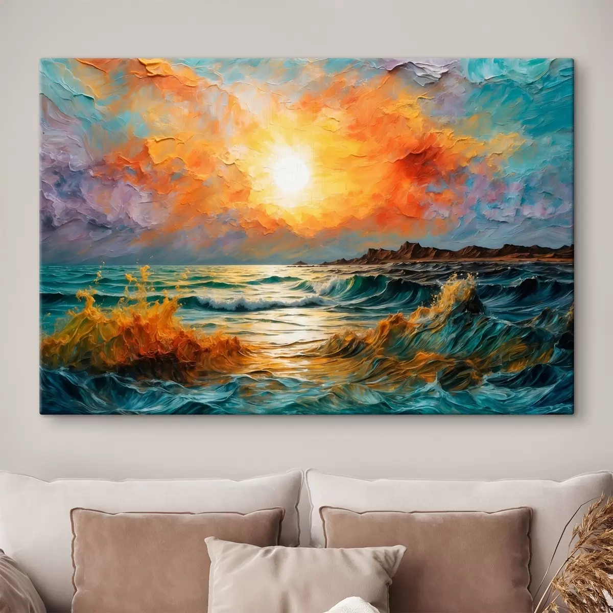 Gemälde Stürmische See und Sonne im Stil eines Ölgemäldes Art. s42920