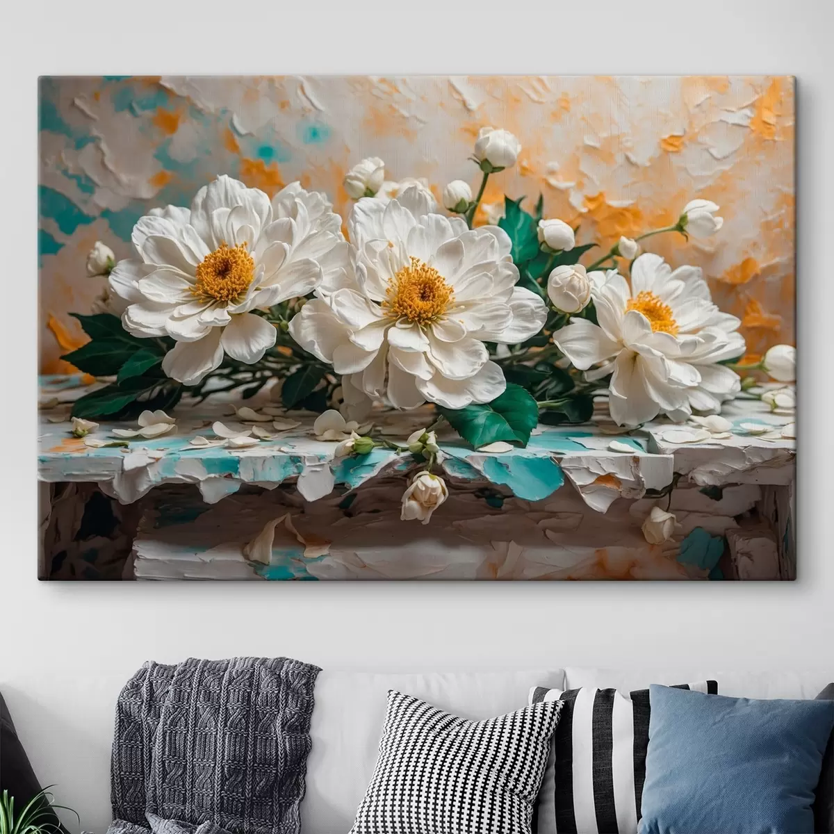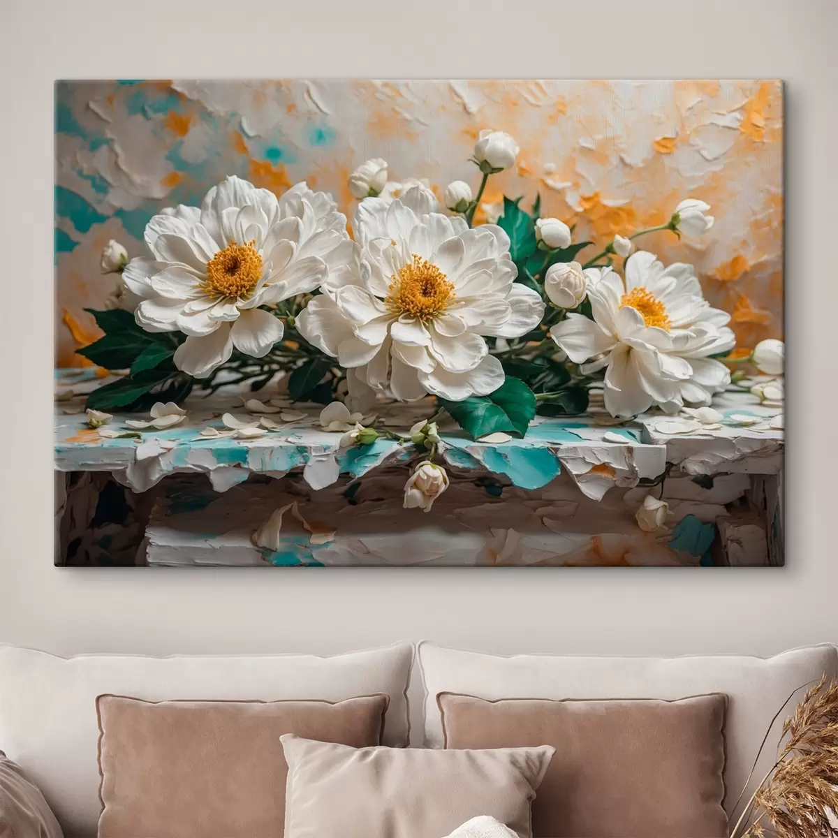 Gemälde Weiße Blumen auf einem Tisch auf abstraktem Hintergrund Art. s42924