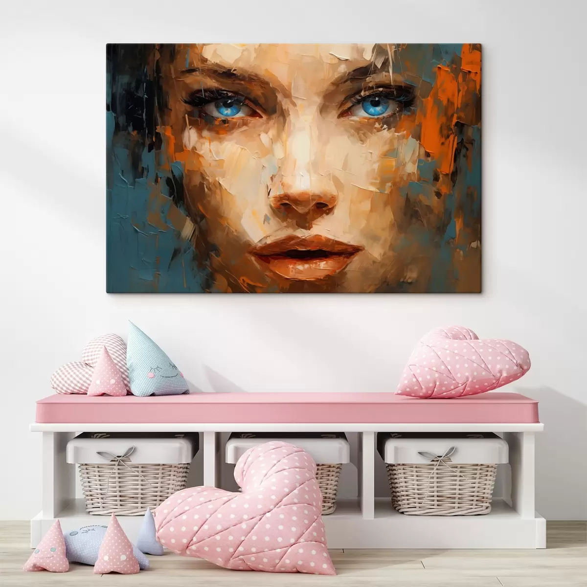 Gemälde Abstraktes Porträt einer Frau in kräftigen Pinselstrichen mit auffallend blauen Augen Art. s42939
