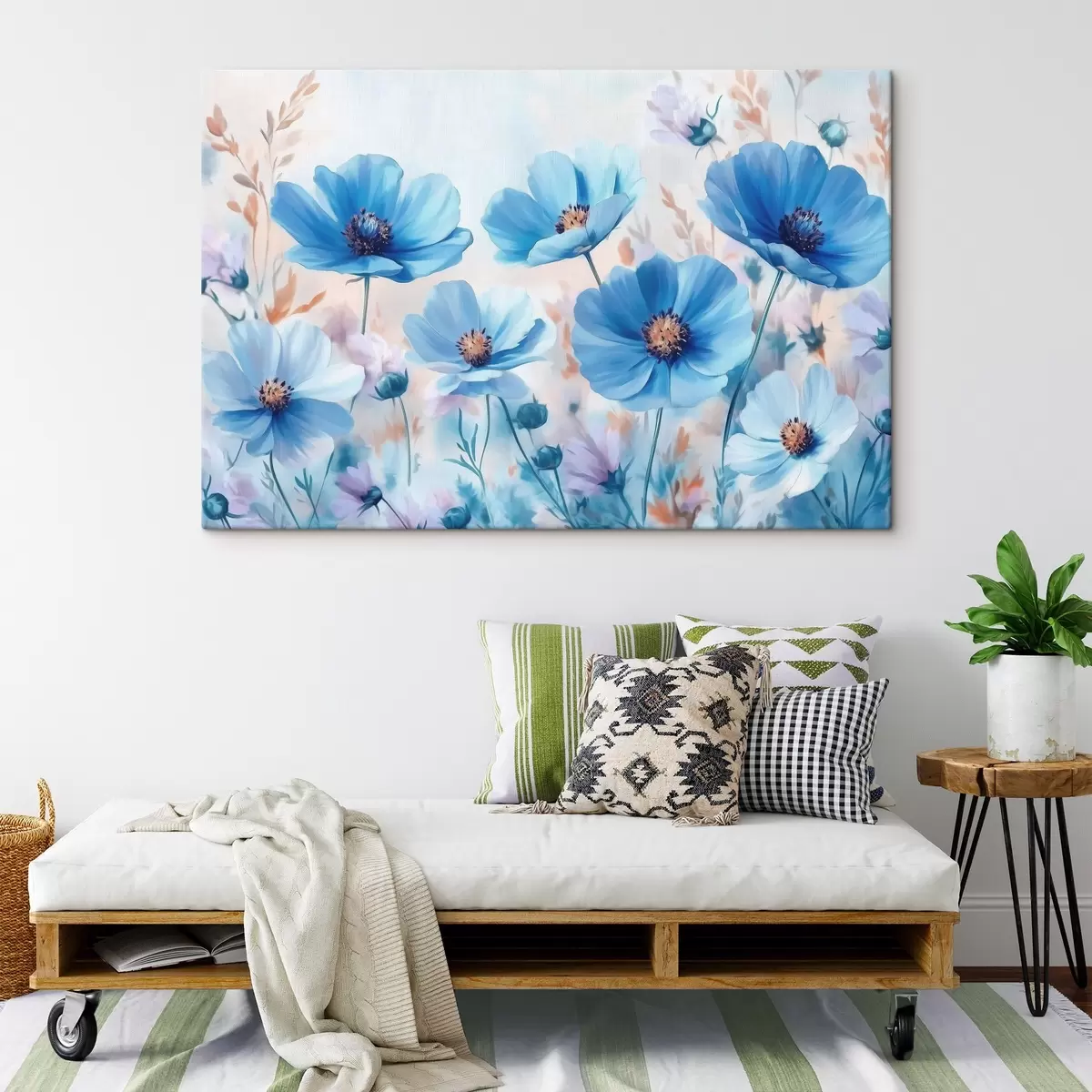 Gemälde Blaue Blumen auf blauem Hintergrund Art. s42971