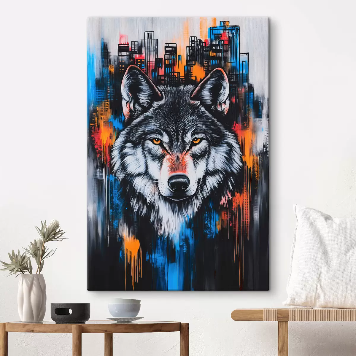 Gemälde Ein Wolf im Hintergrund der Stadt Art. s42994