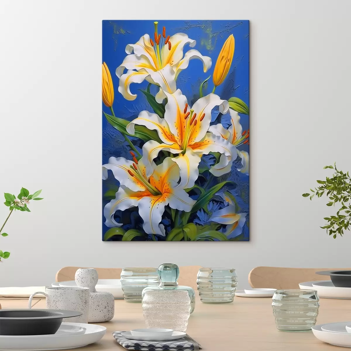 Gemälde Weiße Lilien auf blauem Hintergrund Art. s43018