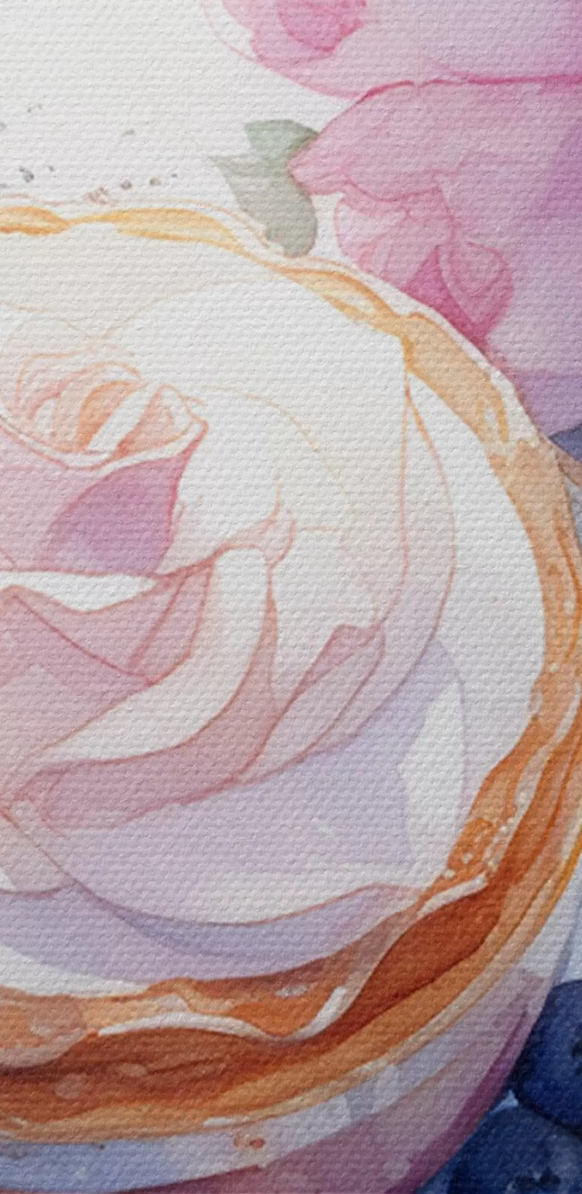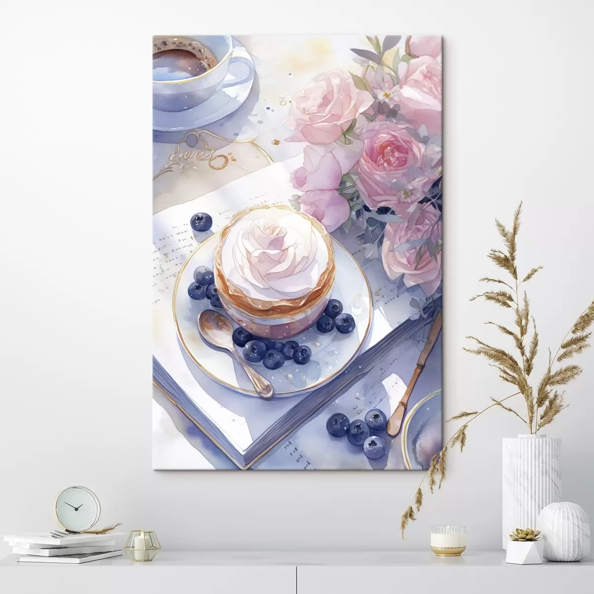 Gemälde Blaubeer-Cupcake, Boho-Stil, Aquarell, rosa Rosen, poetisch Art. s43053