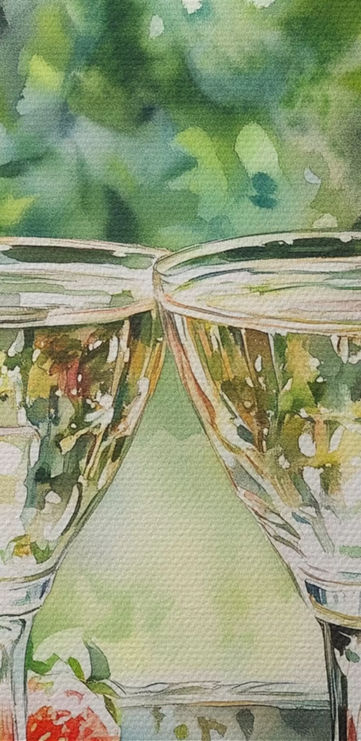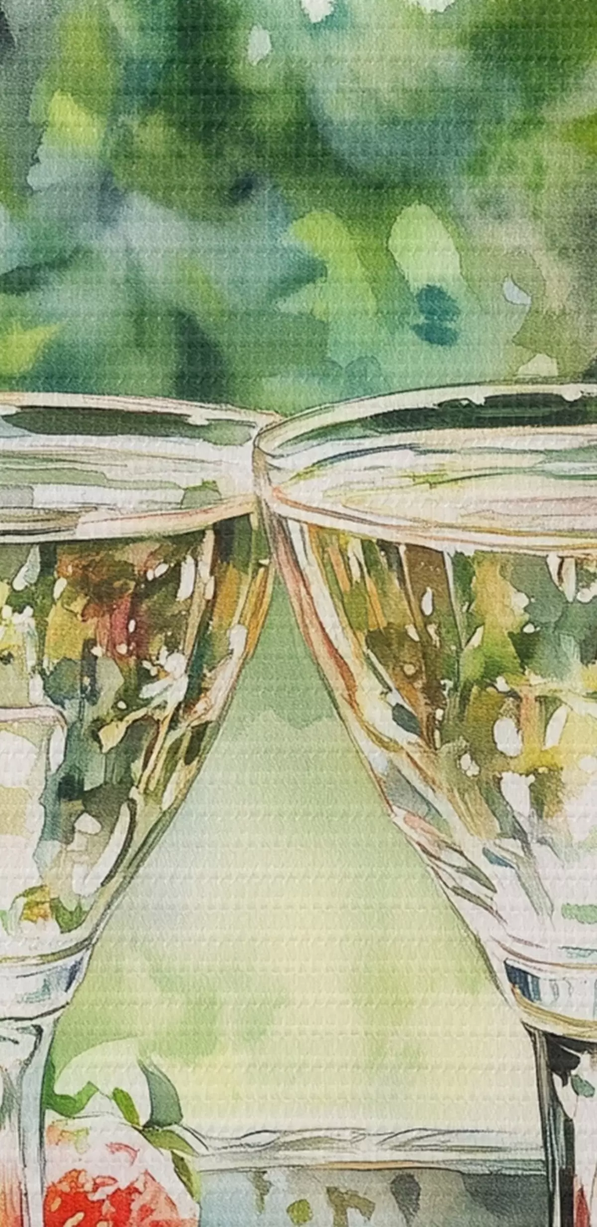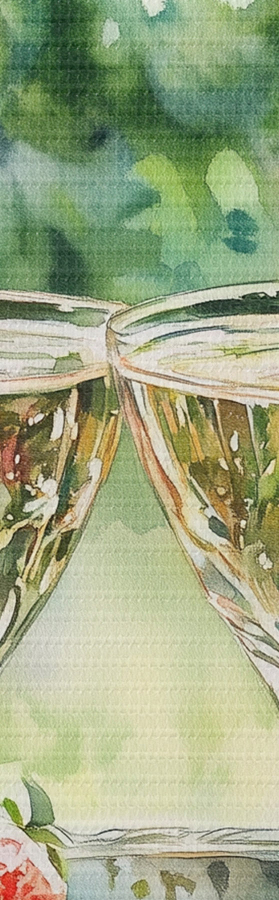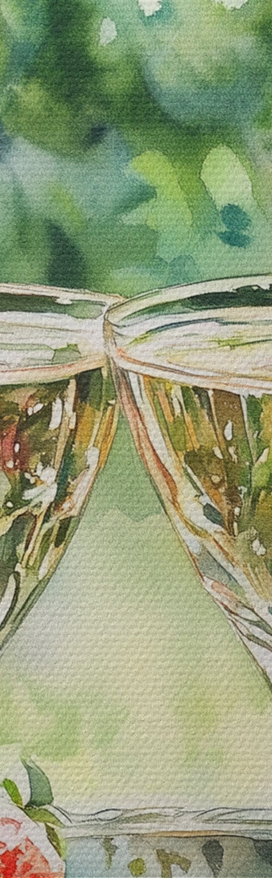 Gemälde Sommerpicknick mit Sekt und Erdbeeren, Aquarellstilzeichnung Art. s43055