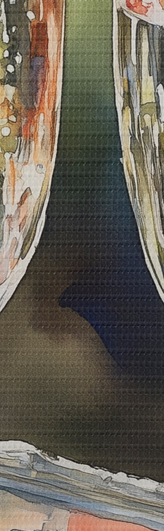 Um die Leinwand auf Keilrahmen zu spannen, ohne das Bild zu beschädigen, verwenden wir ein gespiegeltes Bild.