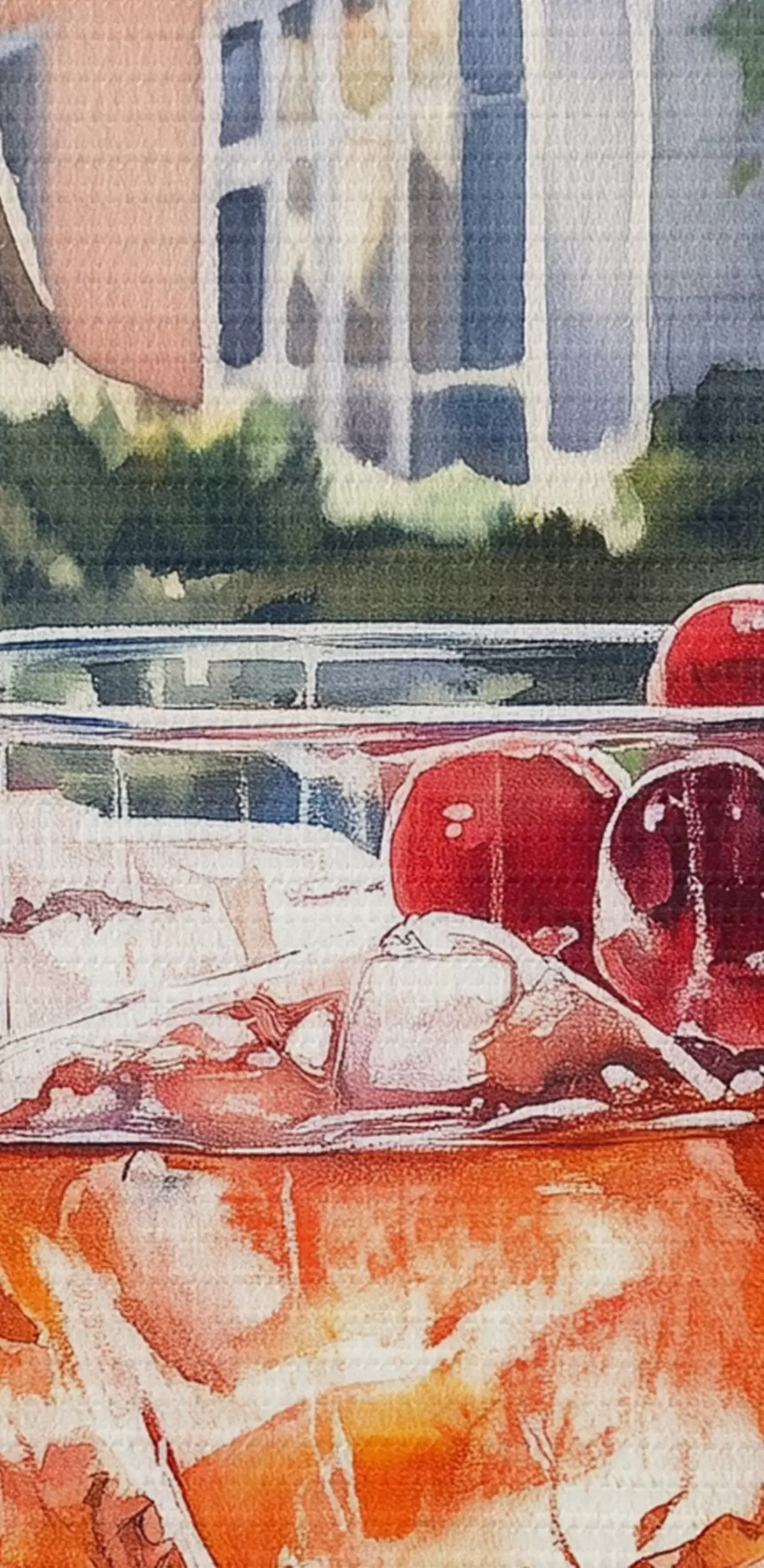 Fototapete Cocktail mit Beeren, Aquarell-Stil, ästhetische Stadt, Sommer Natur s43059
