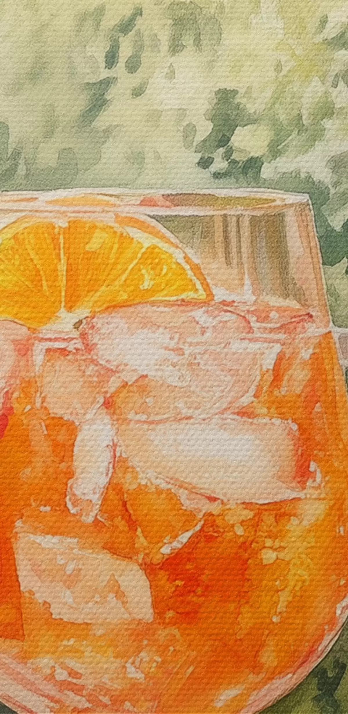 Gemälde Leckerer Cocktail mit Orangen, rustikaler Stil, Aquarell, Natur Art. s43060
