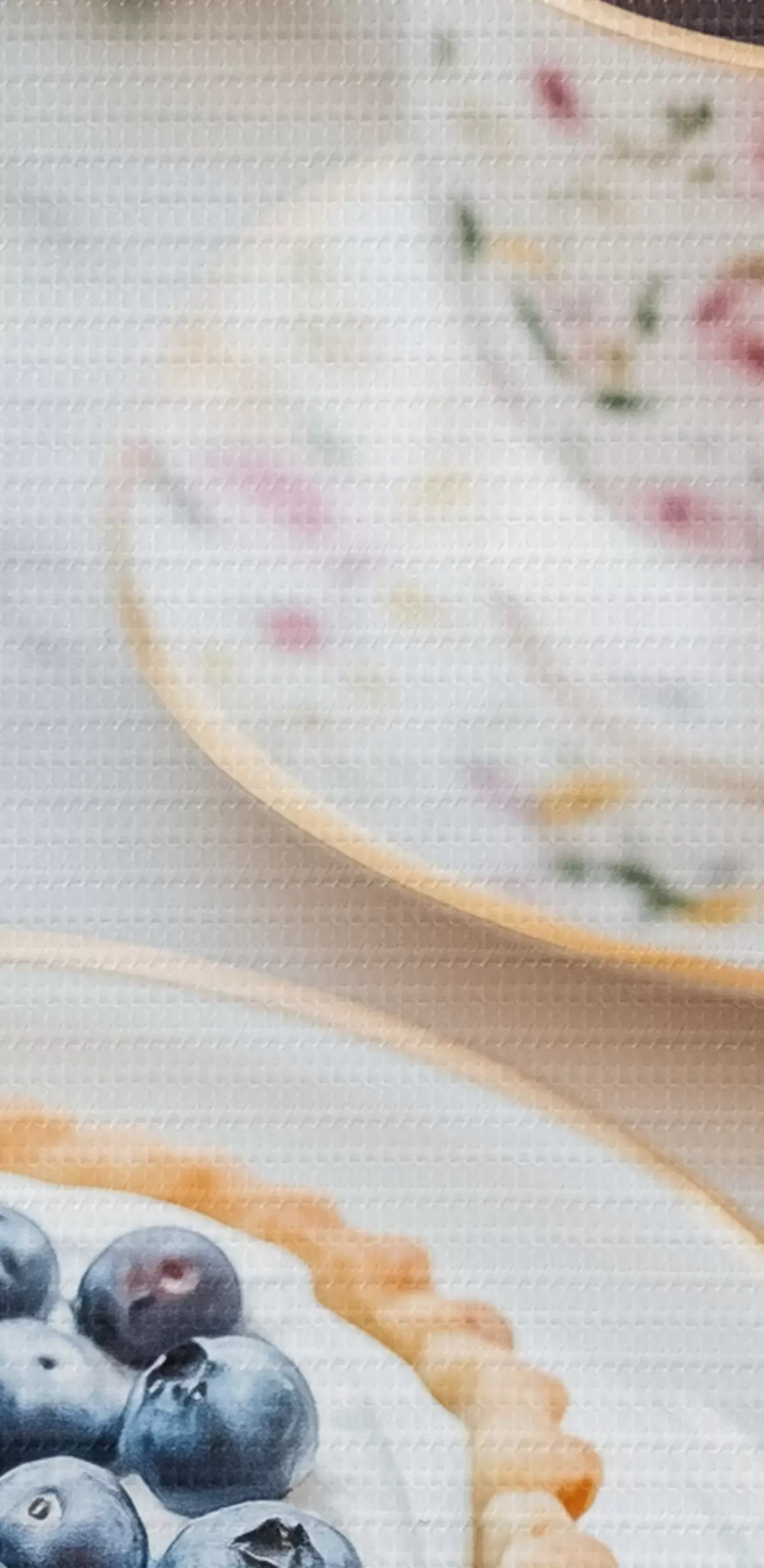 Fototapete Blaubeer-Cupcake mit Tasse Tee, Boho-Stil, rosa Rosen s43066