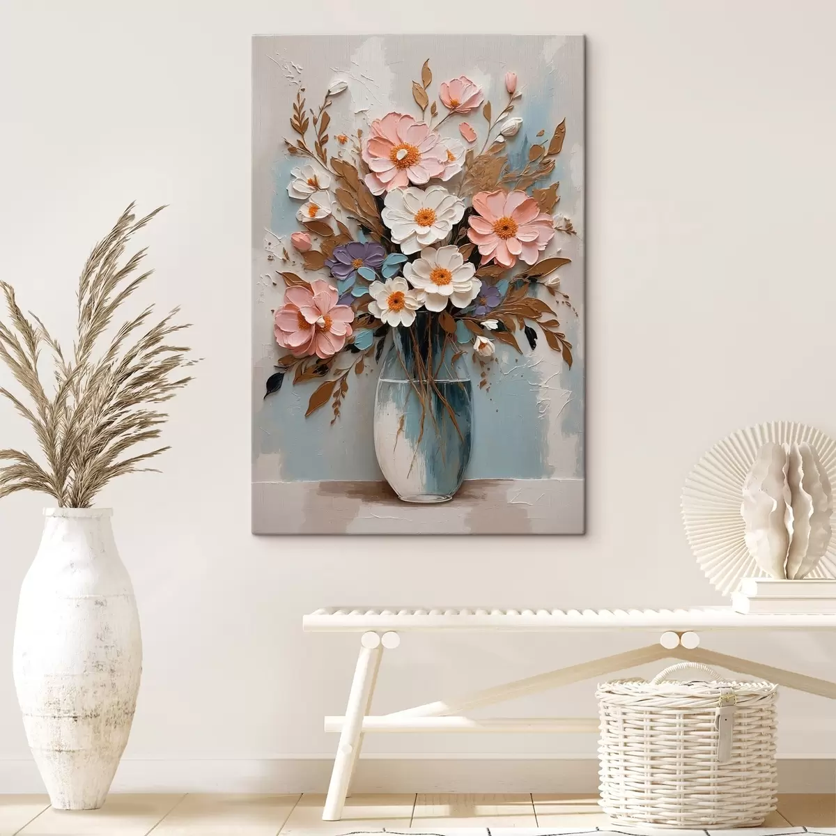 Drei Materialtypen stehen zur Verfügung: Economic Canvas - ein dichtes und haltbares Material für den Digitaldruck, identisch mit Malerleinwand, wasserfeste Oberfläche, realistische Wiedergabe von Details, mittelkörniges Material. Premium Canvas - die Textur ähnelt der einer Malerleinwand (verwobene kleine Fäden). Weiche, detaillierte Wiedergabe des Bildes auf einer matten Oberfläche. Eco-Premium - hochwertiges Gewebe aus 100% Baumwolle. Dank der natürlichen Baumwollfasern ist das Material langlebig und verschleißfest. Hervorragende Farbwiedergabe und Detailtreue.